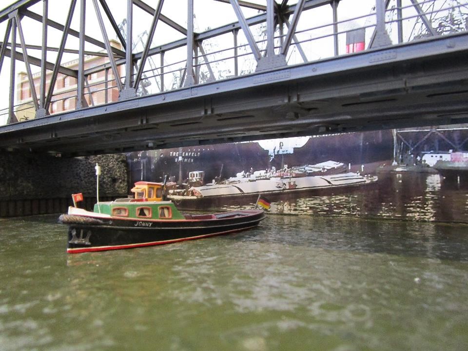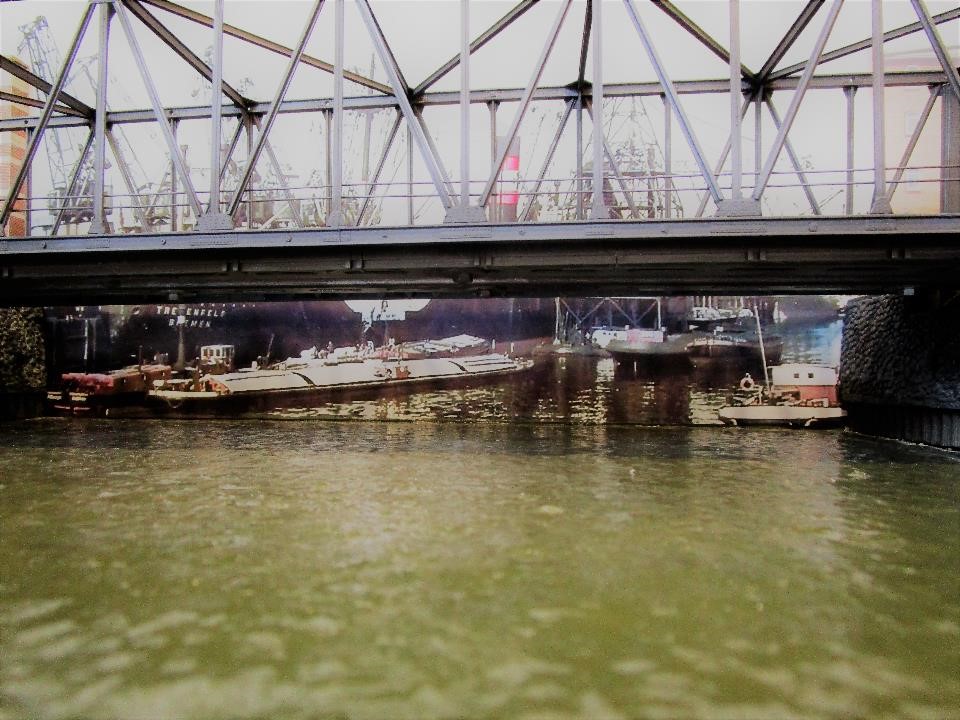 Finale: nach langem Suchen und Probieren hab ich heute getan, nämlich den Hintergrund der (angehenden) Rethebrücke angebracht. Das Bild ist aus dem Netz gefischt und an meine Bedürfnisse angepaßt, wenn auch nicht von Hamburg, aber das wird meine Bremer Freunde freuen :lol: