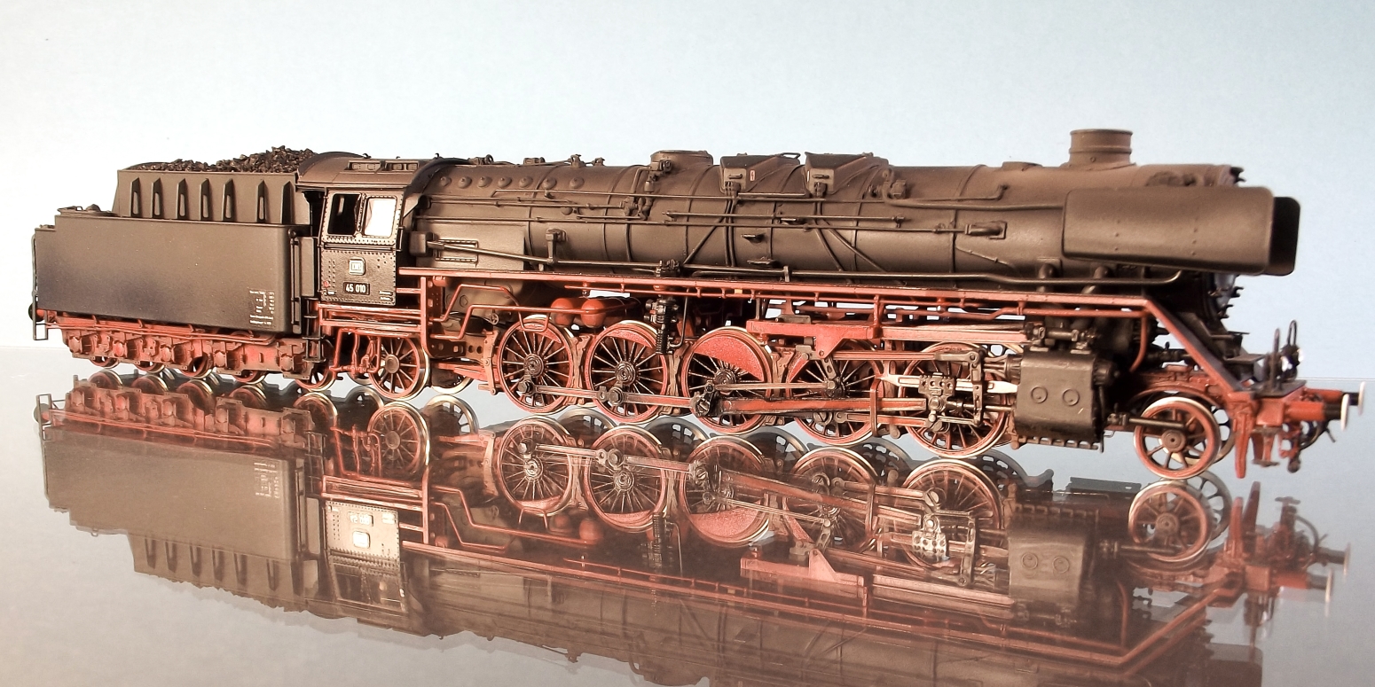 Im letzten Jahr legte mir ein Kunde eine Liliput BR 45 der neuesten Version auf den Tisch, mit dem Hinweis, ich solle mir dazu einmal etwas einfallen lassen. Ich habe eine 45er nie live erleben dürfen und irgendwie fehlte mir auch der Bezug zu diesem Lokriesen. Weil noch andere Arbeiten in der Werkstatt auf Fertigstellung warteten, wanderte die Lok zunächst in die Abteilung "Wiedervorlage". Gedanklich beschäftigte mich das Modell allerdings schon. Bei DSO hatte sich Go Fleiter schon mit der Lok beschäftigt siehe hier , was mir schon zu denken gab und auch bei uns im Forum hat sich Gerhard Gottsmann schon mit der Vorgängerversion der Liliput 45 beschäftigt hier. Aber es kam noch schlimmer…