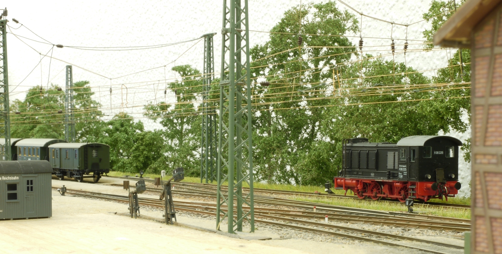(2) V36 225 sägt also über die jetzt freien Gleise bis zum Lokschuppen, wo der Schlafwagen angekuppelt wird.