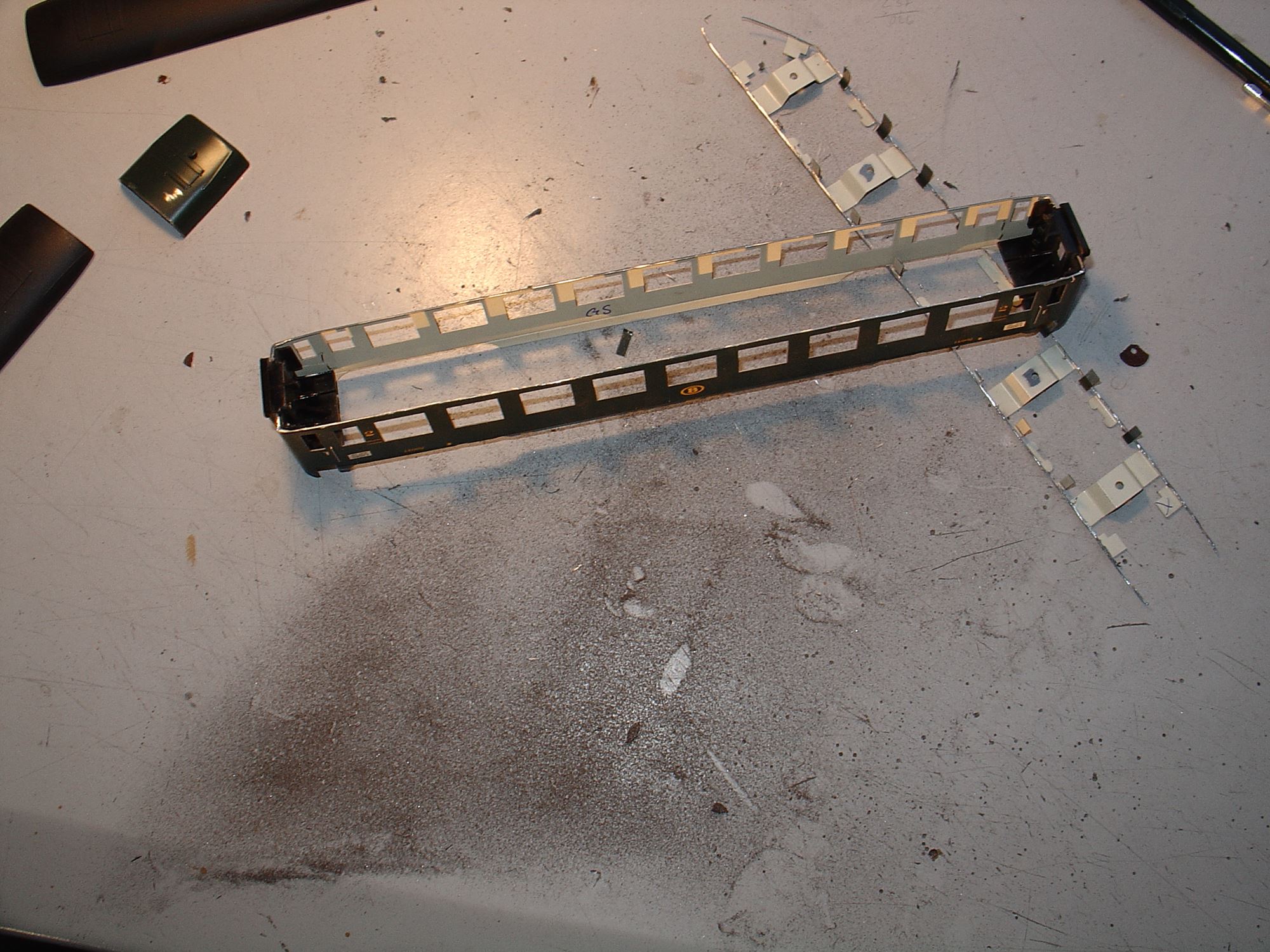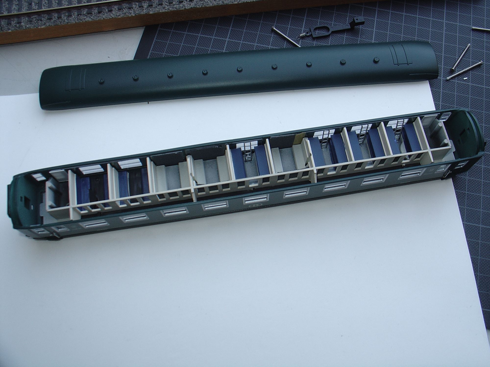 Danach machte ich mich an dem Märklin-Modell zu schaffen, das Dach sollte gegen ein Dach eines älteren Lima-Wagens (DEV-AO) getauscht werden, damit der "Platzhalter" wenigsten etwas belgisch aussah.