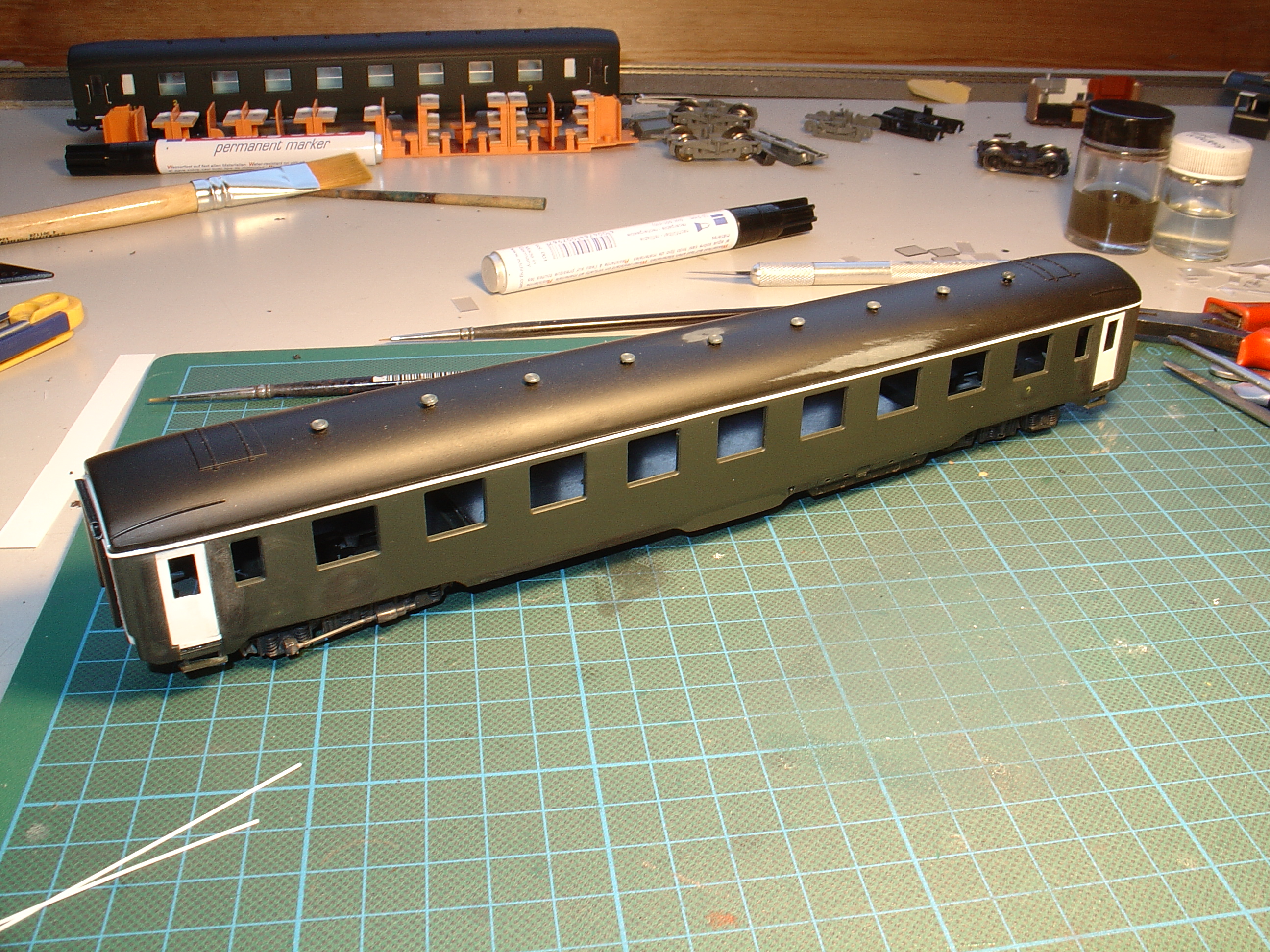 Da das natürlich nicht ohne Lackschäden über die Bühne ging, und der Farbton von Märklin einfach nicht zu treffen war, fiel das Ergebnis mehr als bescheiden aus: