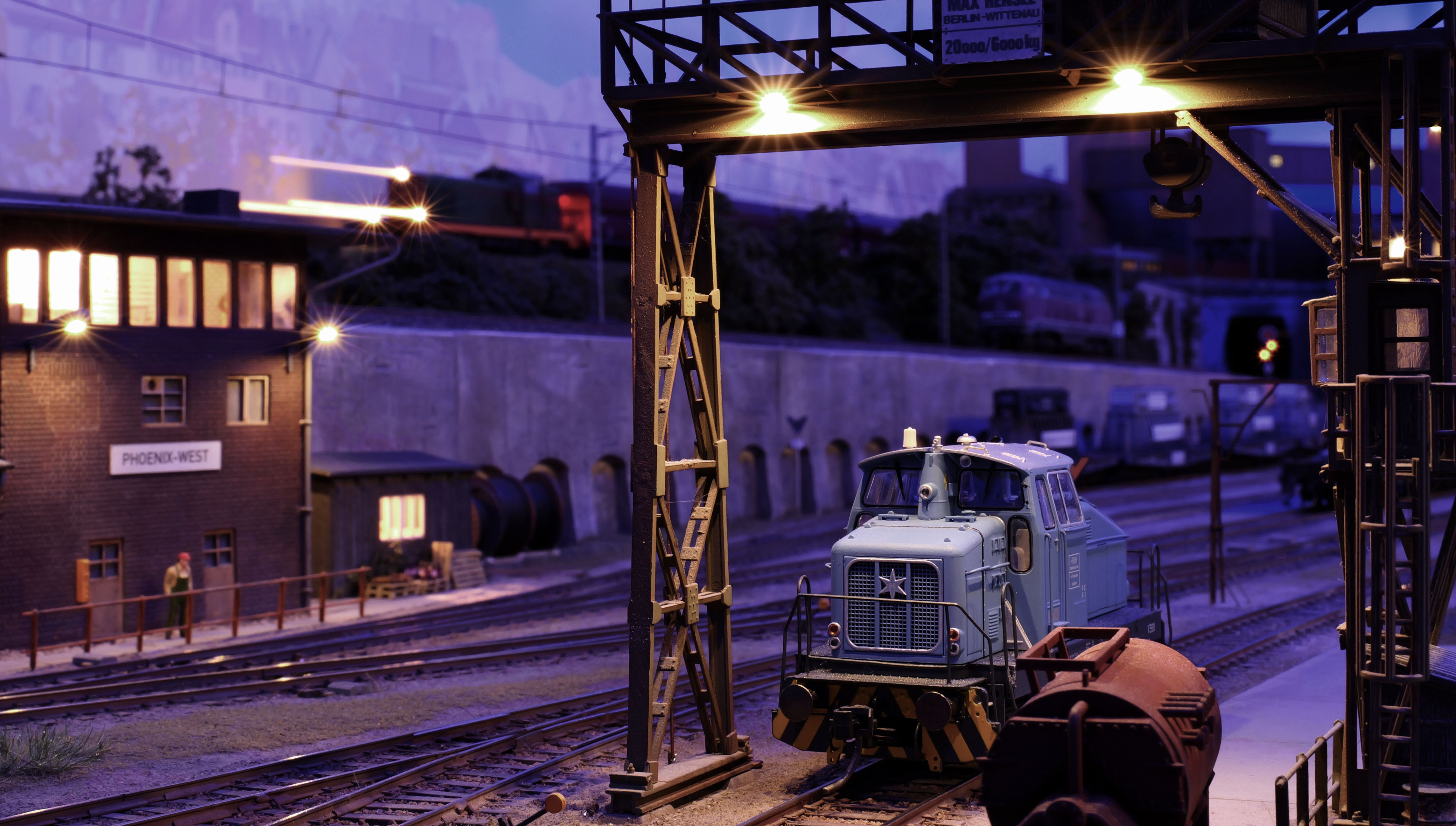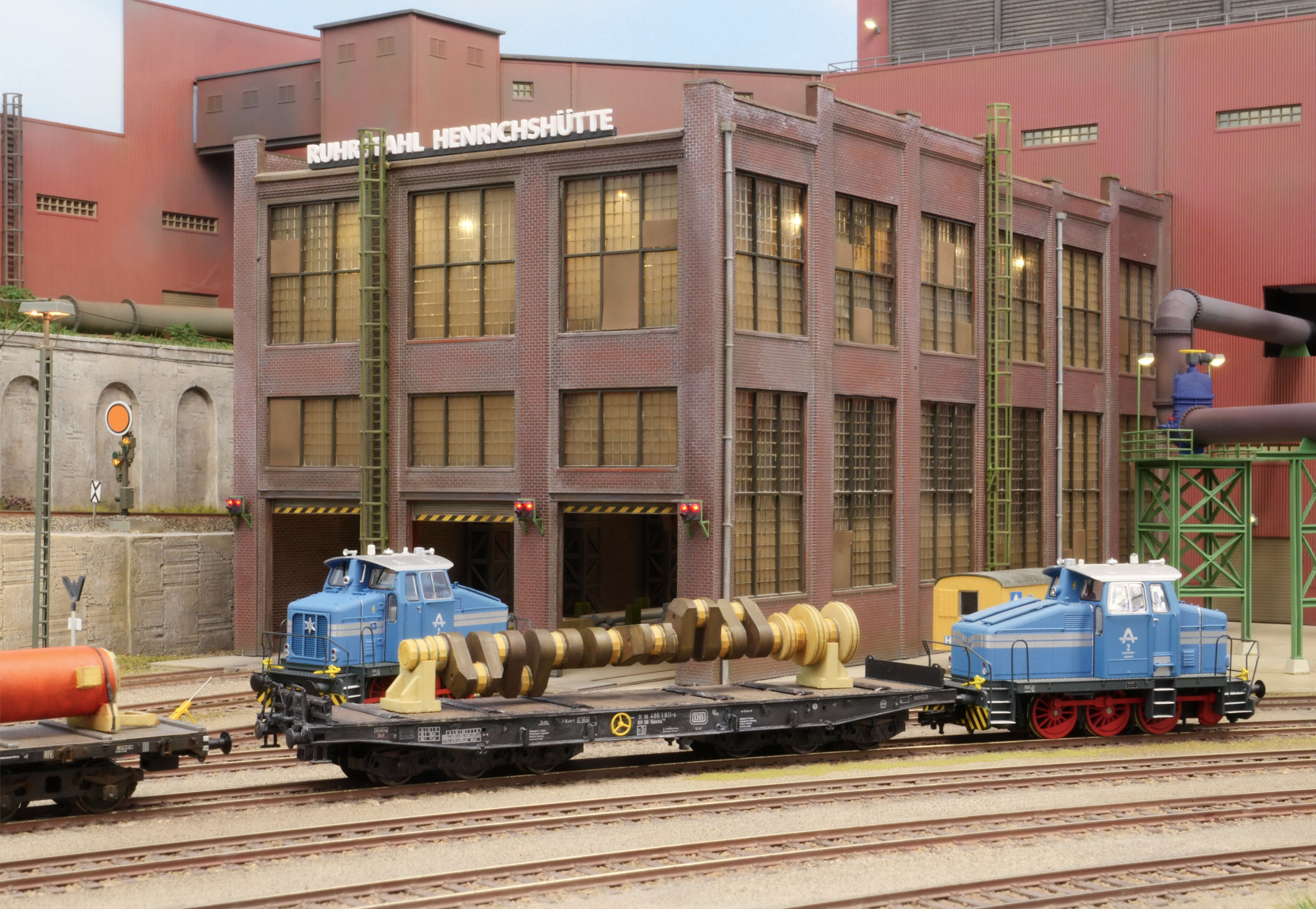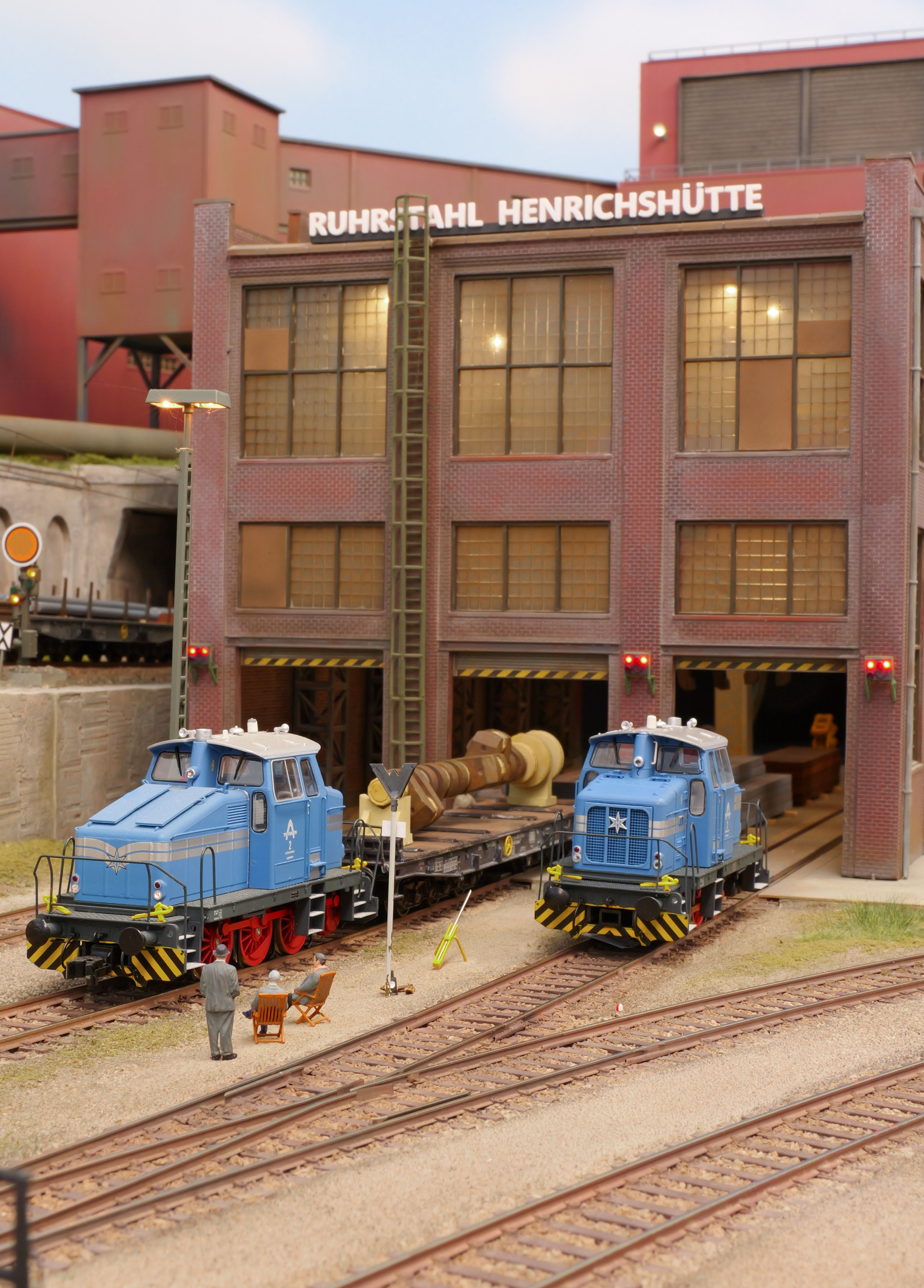 Wichtigstes Utensil: „Ruhrstahl Henrichshütte“ als Aufsatz, um vorübergehend die Stahlbahn von Hüttenheim nach Hattingen zu verorten. Außerdem im Gepäck passendes Rollmaterial in Henschelblau und natürlich die Hauptdarsteller.