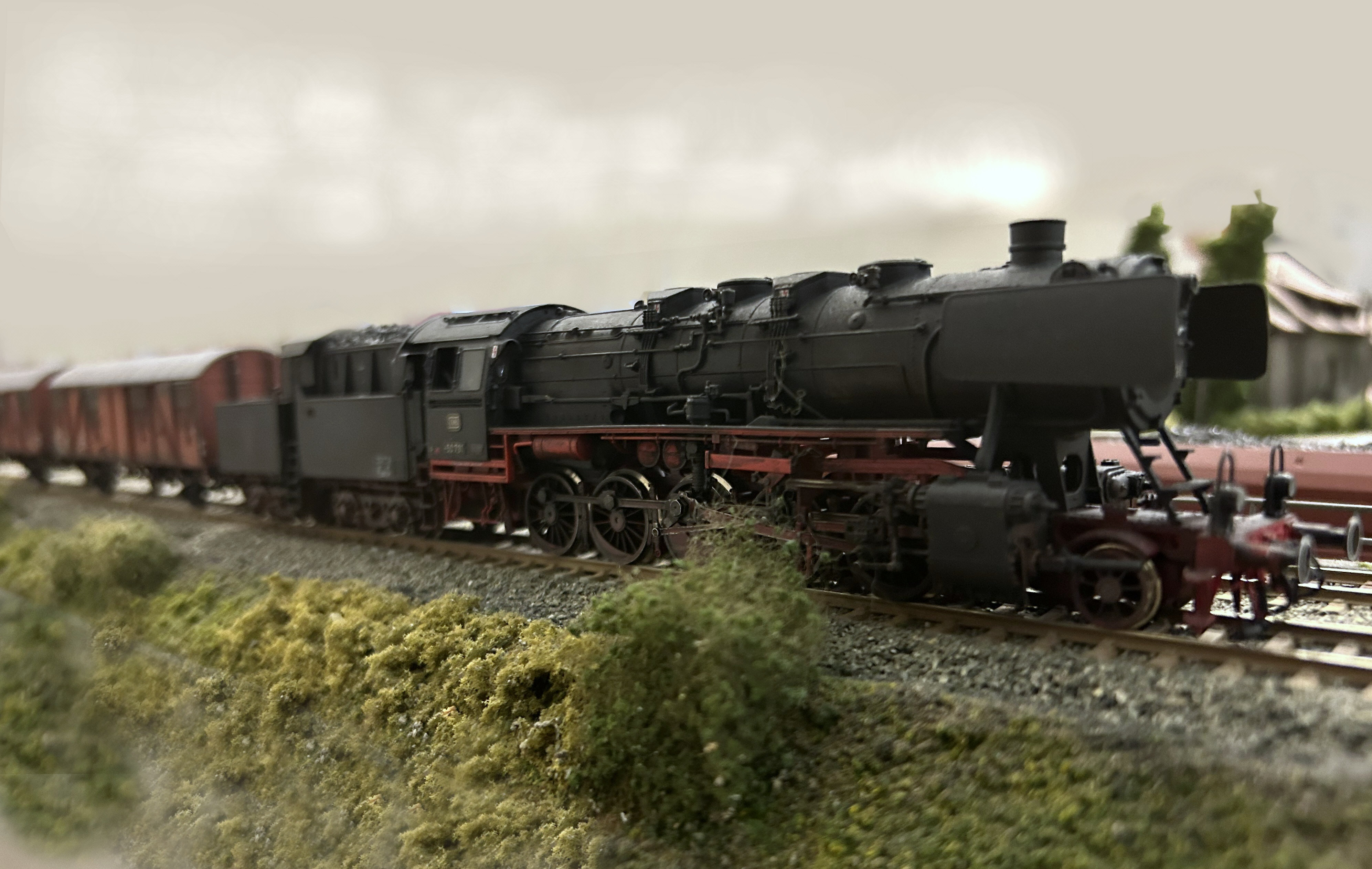 Und wieder klemmen diese verfluchten Tenderklappen. Beim Aufrüsten hatte es der Mann am Kohlenbunker wohl zu gut gemeint und die Kohle zu hoch aufgefüllt. Beim Fahren scheint wohl wieder mal ein Brocken Kohle die Mechanik zu verklemmen. Die Kohlenvorschubeinrichtung funktioniert auch schon lange nicht mehr und so bleibt einfach der Haufen hinten im Tender liegen und der Meister nimmt lieber häufiger Kohlen, bevor er es sich mit seinem Linksaußen verscherzt….
