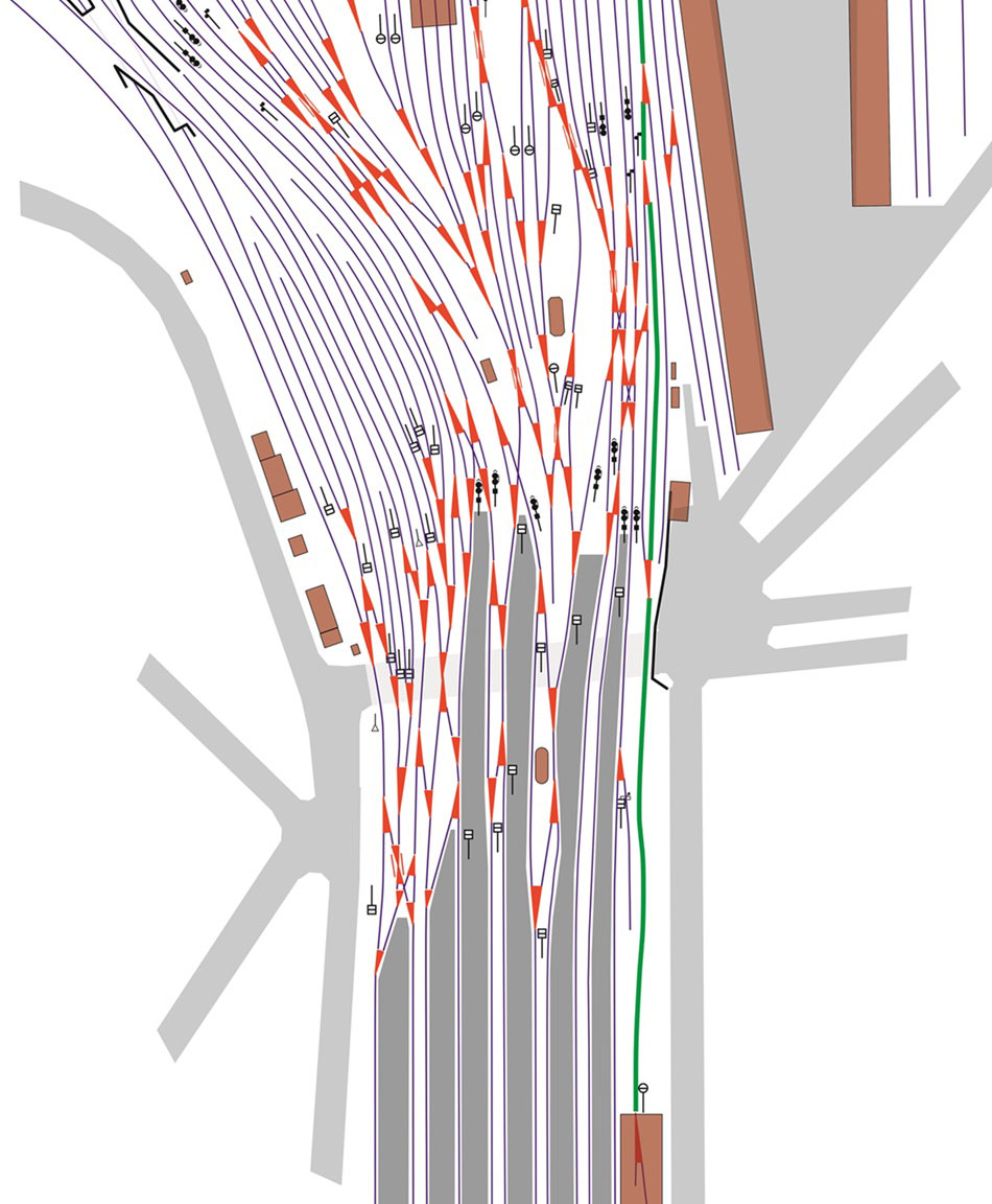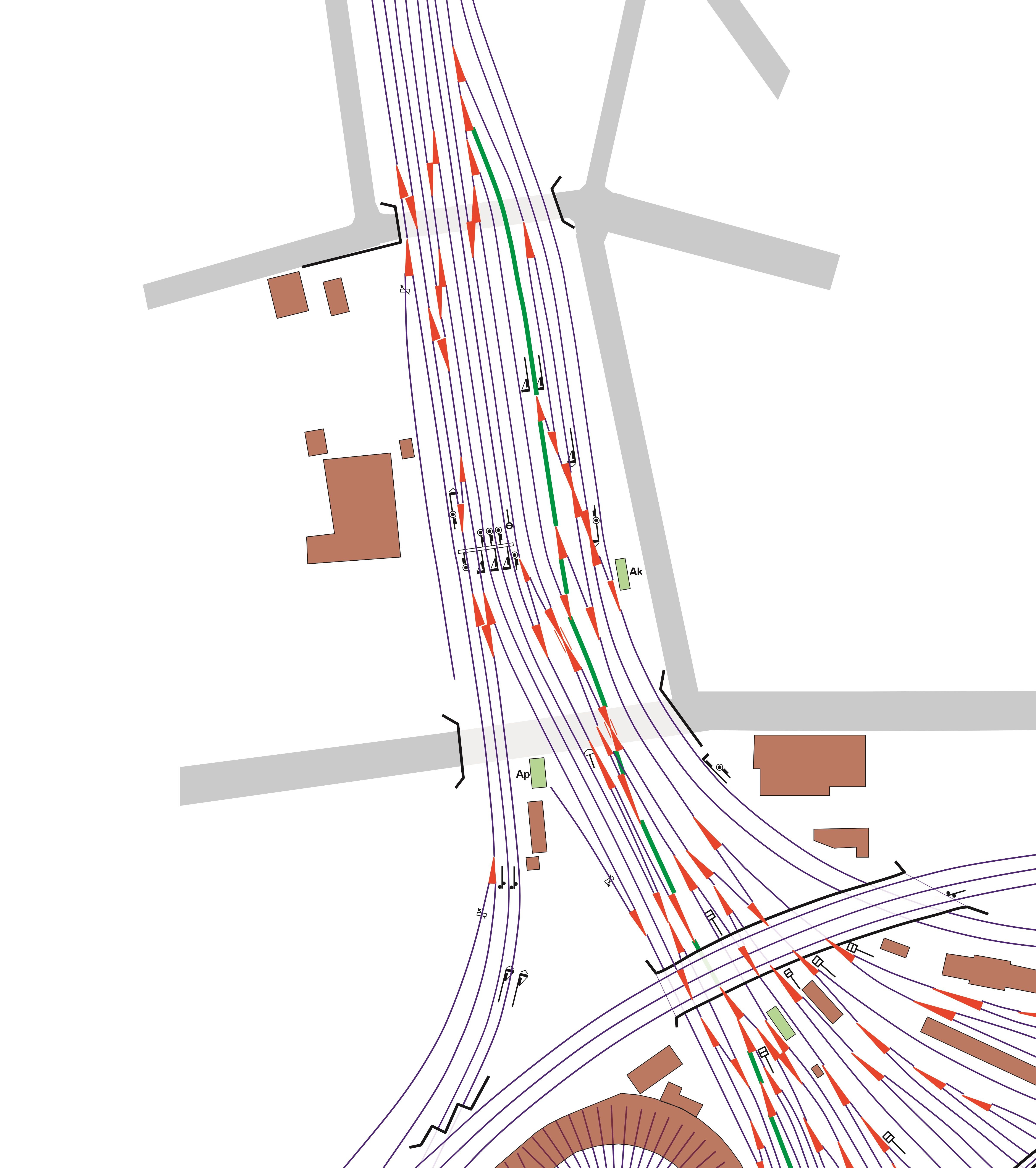 In den Spurplänen ist der Weg grün eingezeichnet.