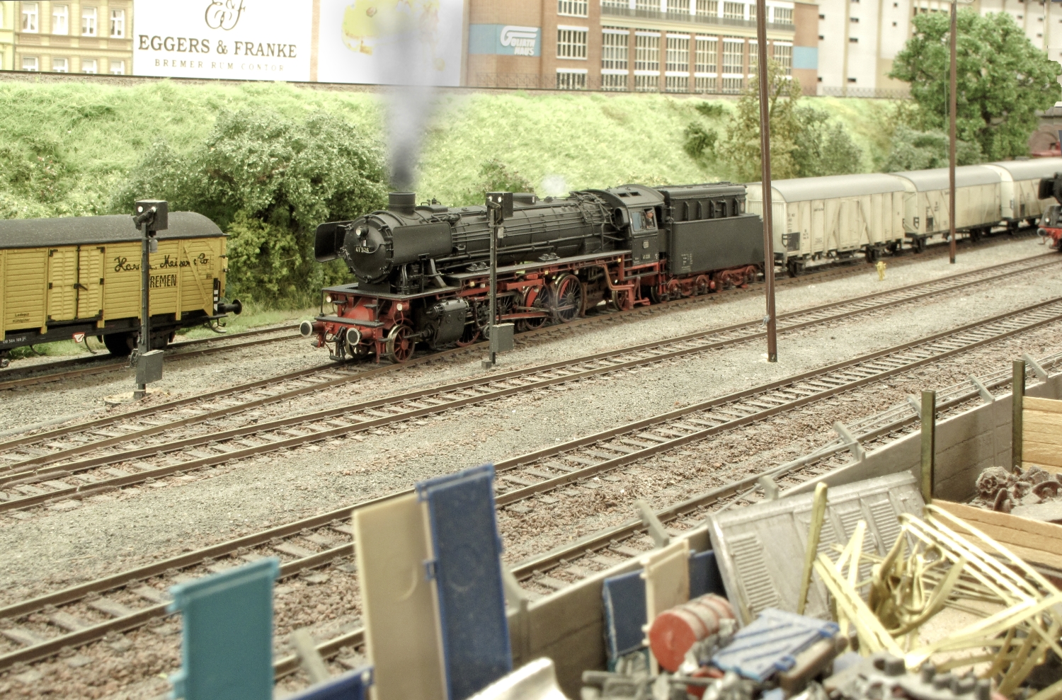 Der Zug geht ab Hamburg mit einer Lok der BR 41 - hier Lok 41 160 vom Bw Bremerhaven-Lehe. Sie bringt den Zug bis Bremen, wo ihn dann eine NK-41er - hier 41 226 vom Bw Osnabrück Hbf übernimmt. Die 41 226 wird den Zug dann bis Hamm (Westf.) bringen. In Bremen wird der Zug noch verstärkt mit Wagen aus Bremerhaven und/oder Cuxhaven. Der Zug wird als Sg (=Schnellgüterzug) laufen mit einer Höchstgeschwindigkeit von 80 km/h und einem Gewicht von rund 1.000 to.