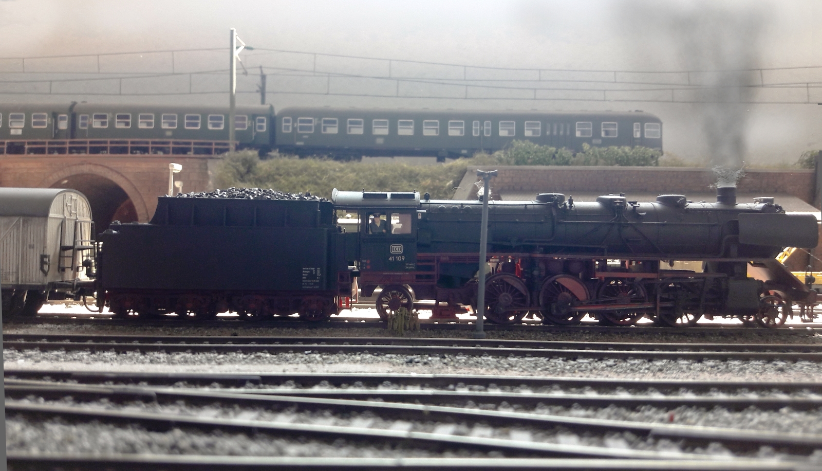 Auch haben wir mit 41 109 wieder eine Altbaukessel 41er vor dem Zug. Für sie wird die Fahrt hier enden und die Fuhre wird eine 50er übernehmen.