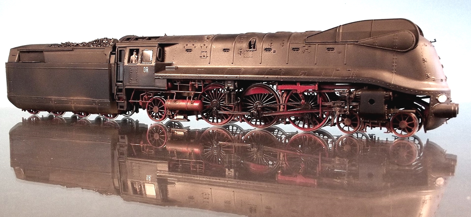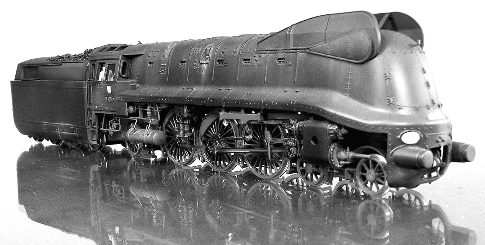 neulich begab es sich, dass ich von einem sehr geschätzten Kunden folgende Komponenten zugeschickt bekam: Zwei “Gehäuse “ der Fleischmann 03.10 Stromlinie (ich mag den Begriff im Zusammenhang mit Modelleisenbahn gar nicht, deshalb die Gänsefüßchen....), ein angefangenes Weinert-Fahrwerk der 03.10/ DB und einen angefangenen Tender derselben Lok, dazu noch ein paar Restteile des Weinert Bausatzes 03.10/ DB. Der Wunsch war nun, daraus eine teilentstromte Variante der DR/Ost, so im Zustand der Jahre 1946 – 48, also noch vor Gründung der DDR, zu schaffen.