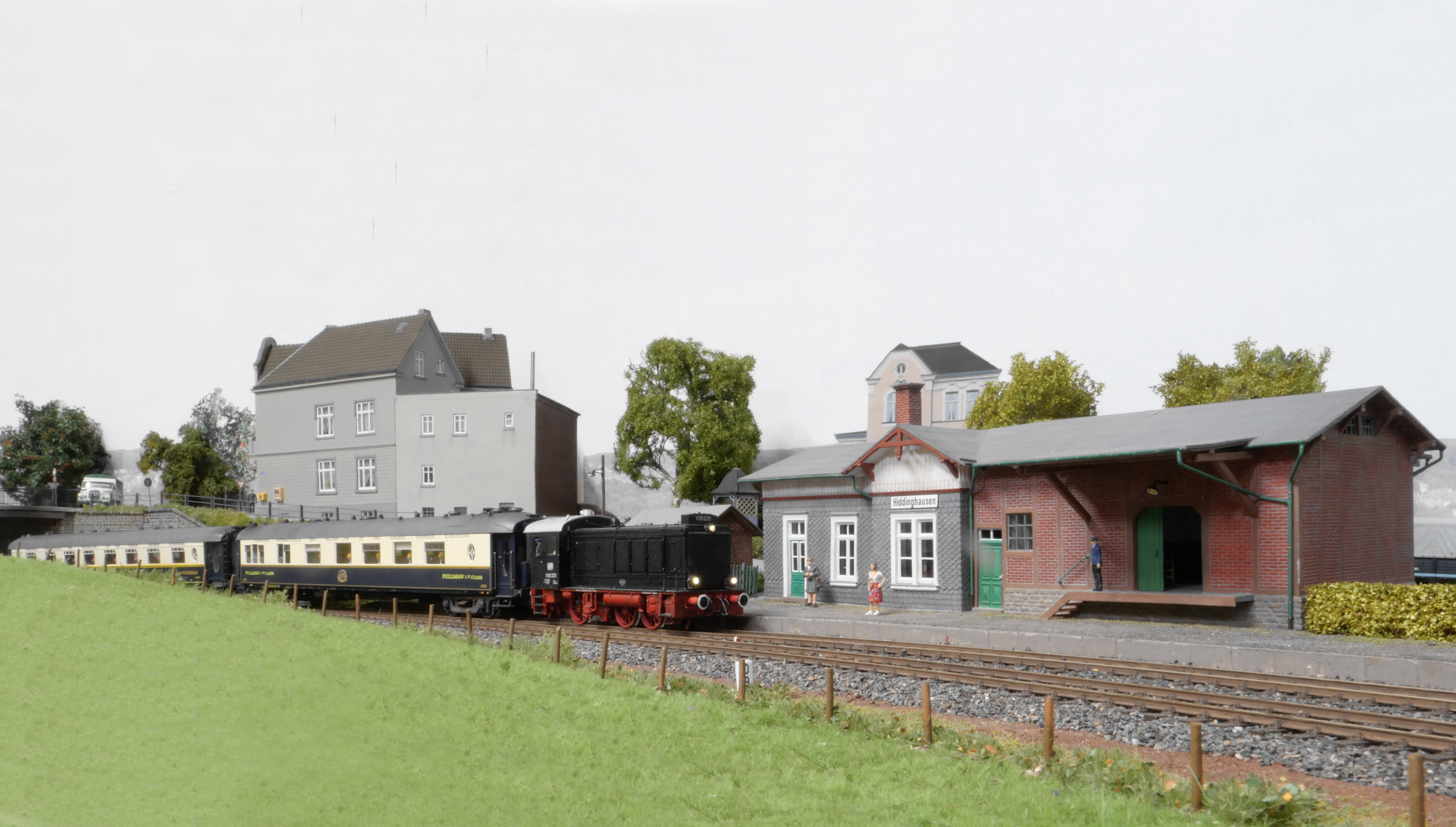 Eine Steinbecker V36 übernahm die Aufgabe, die beiden Pretiosen von Wuppertal aus nach Hiddinghausen zu überführen. Die Reisenden am Bahnsteig sind doch etwas überrascht, was denn da statt des üblichen GmP an ihnen vorbeidefilierte.....