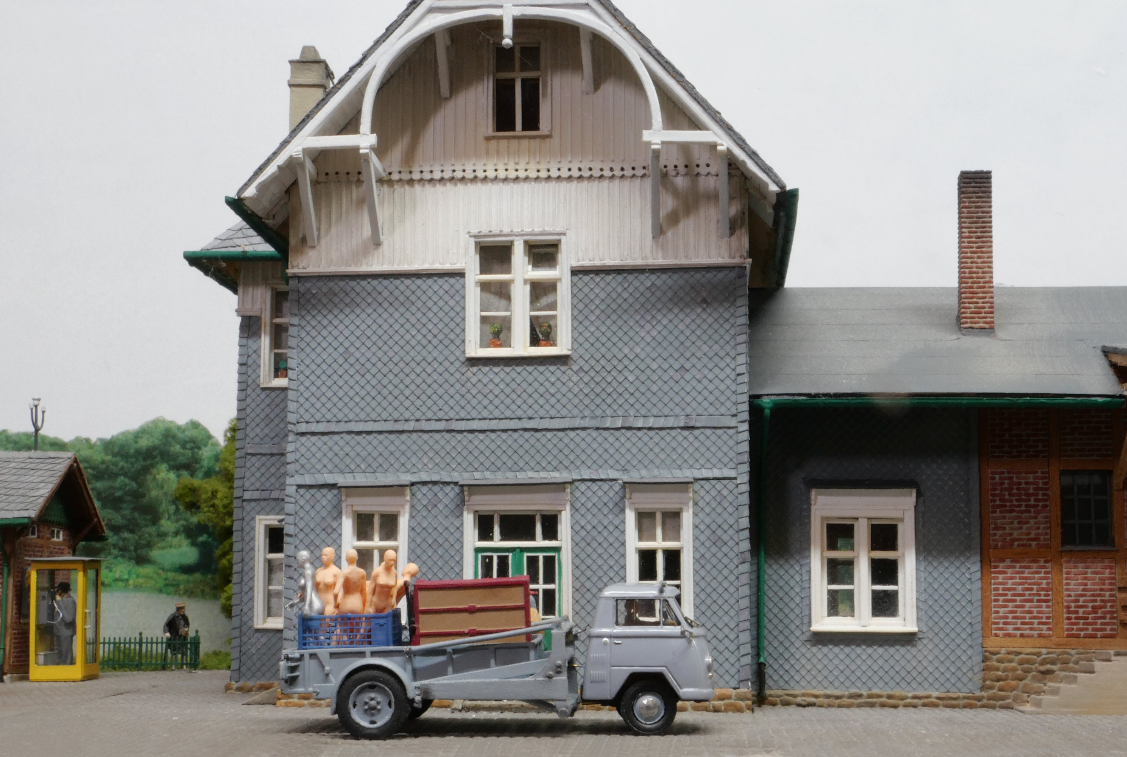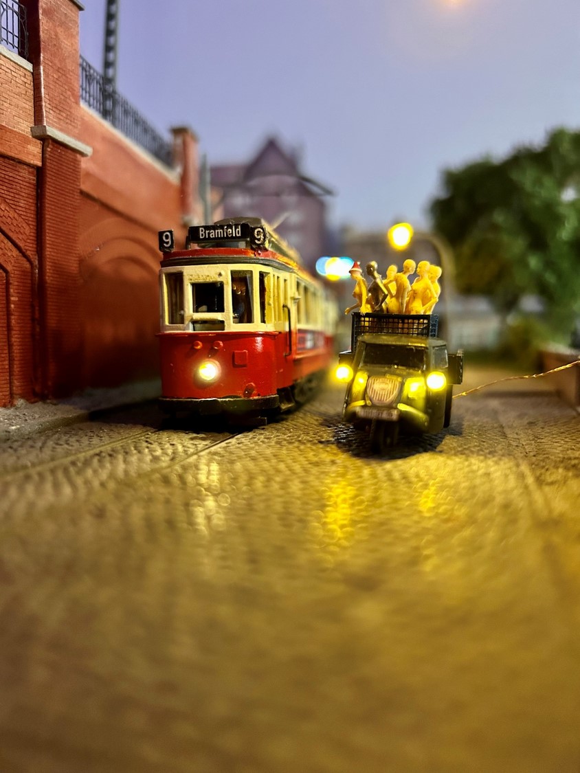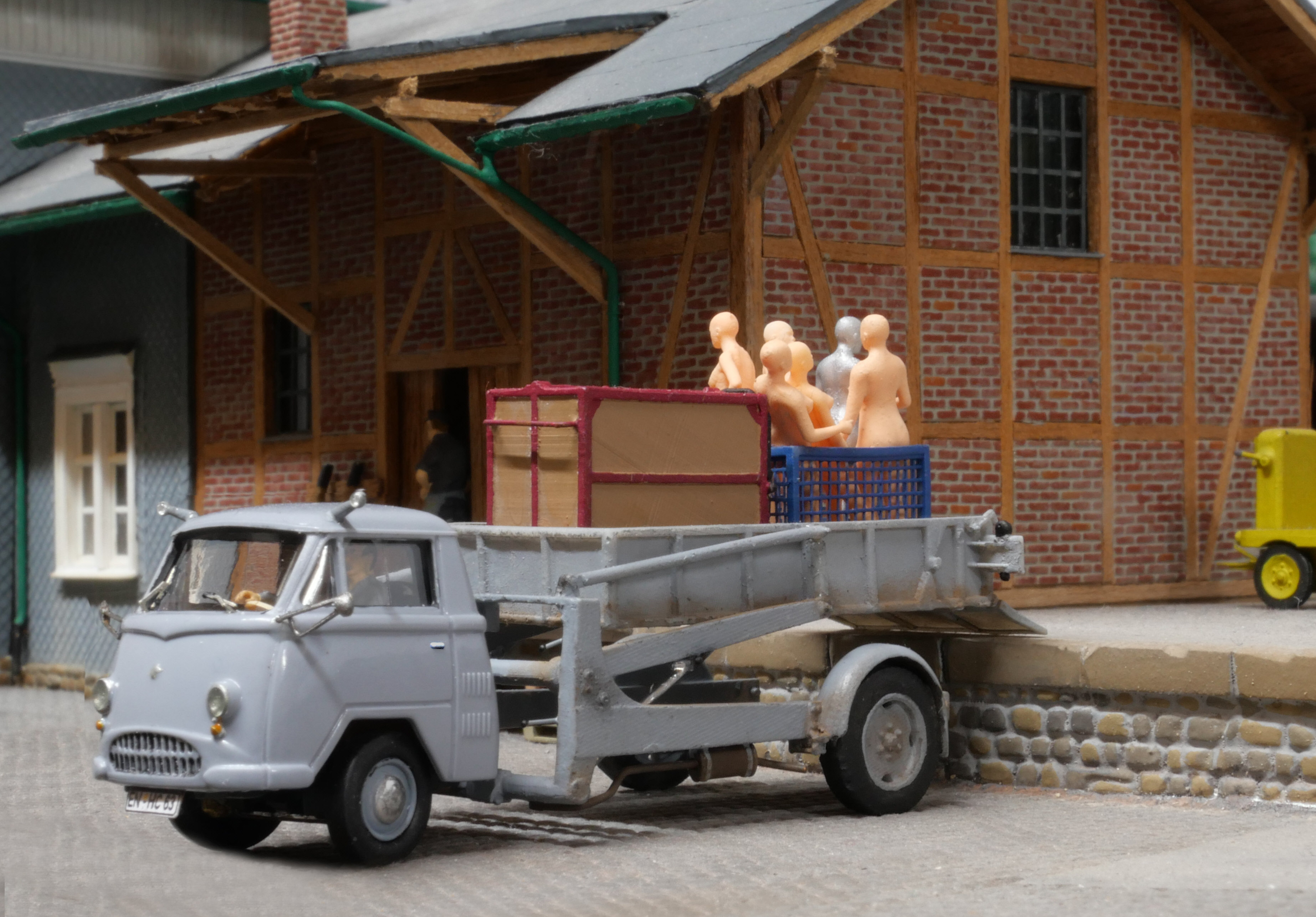 Offensichtlich hat der gute Fiete mit den Puppen von seinem Freund Heinrich was besseres vor. Spielschulden begleichen? Man weiß es nicht, man munkelt nur. Jedenfalls kommt Klaus mit seinem Tempo angefahren, das Ladegeschäft ist schnell erledigt und nu gehts flugs in der einsetzenden Dämmerung...ja wohin denn?