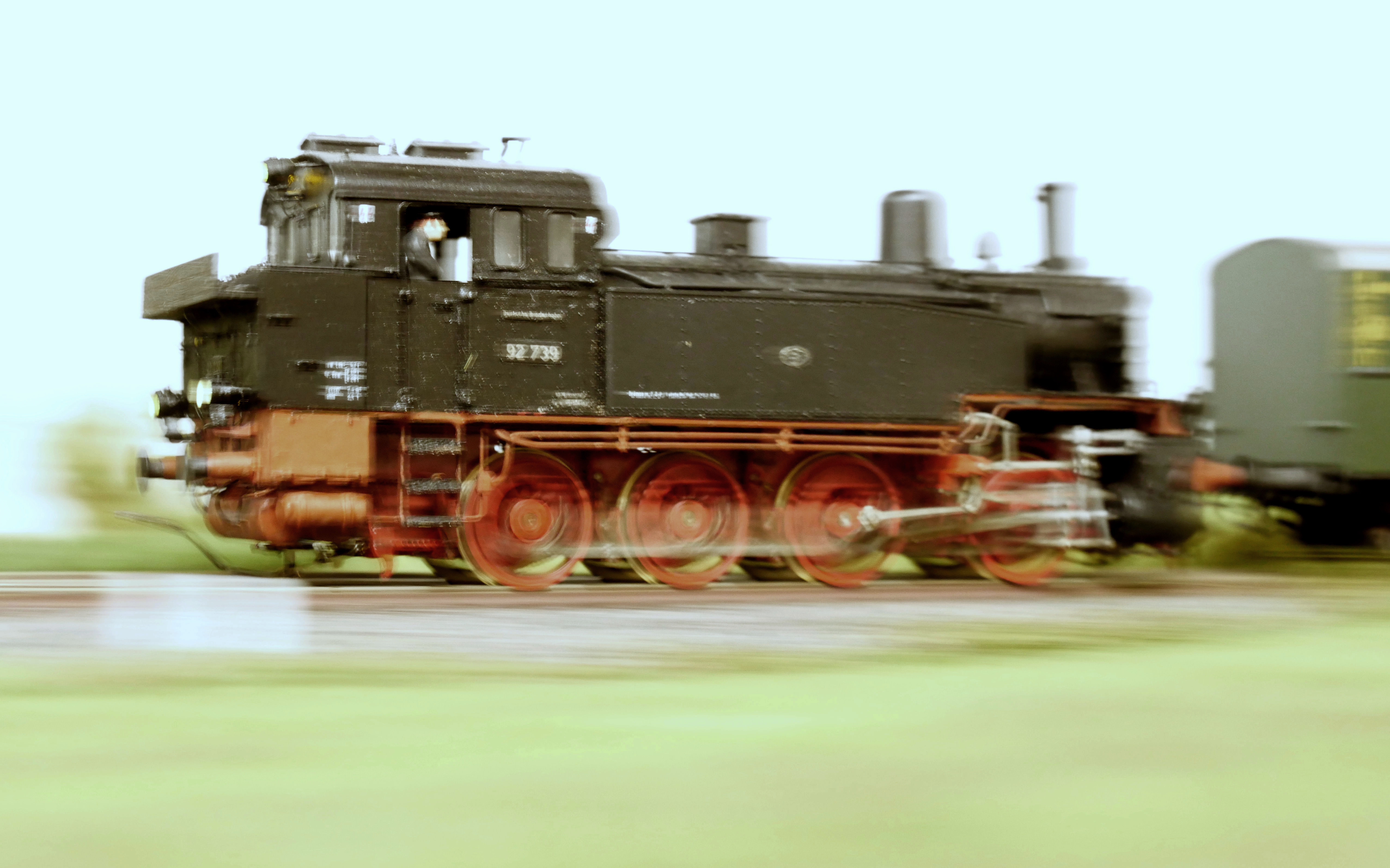 Mit wirbelnden Stangen bringt die betagte Preußin ihre Fracht dem entfernten Ziel im Norden näher.