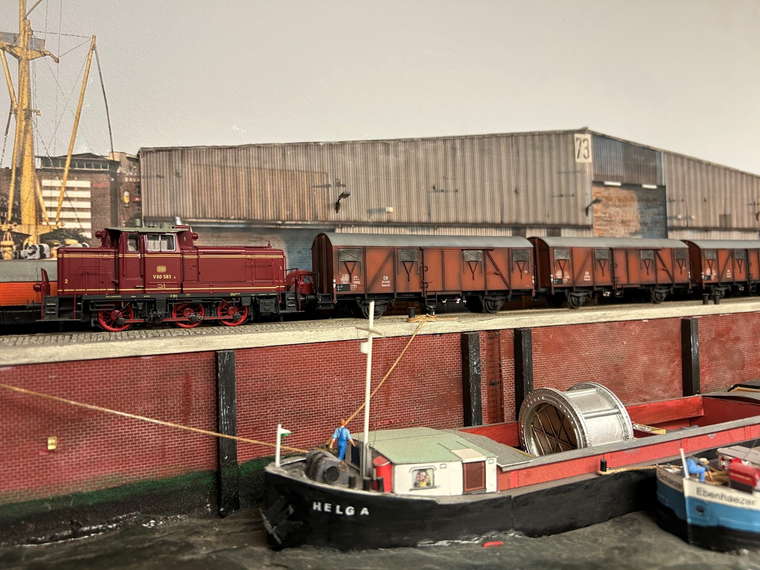 noch am Silvesterabend ist die Fuhre in Hamburg angekommen. Eine frisch hauptuntersuchte V60 drückt die Stückgutwagen an Schuppen 73 im Hafen, nicht gerade im "Bessere-Leute-Viertel", wie sich im Laufe des Abends herausstellen wird, aber dazu später mehr.