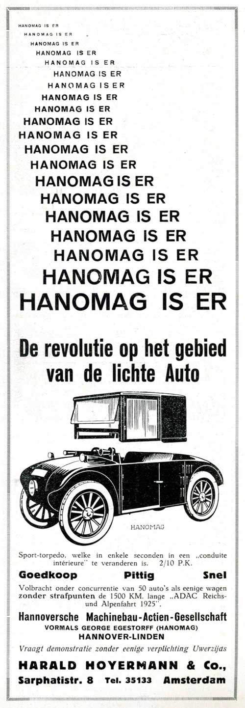 Hanomag steigt mit einem 10PS-Kleinwagen (wegen seiner Form „Kommissbrot“ genannt) mit erstaunlichem Erfolg ins Personenwagen-Geschäft ein.