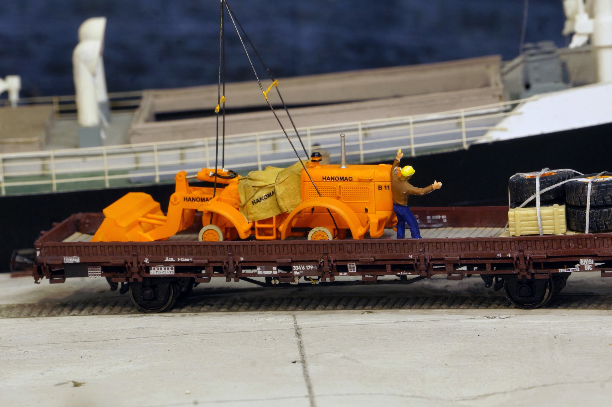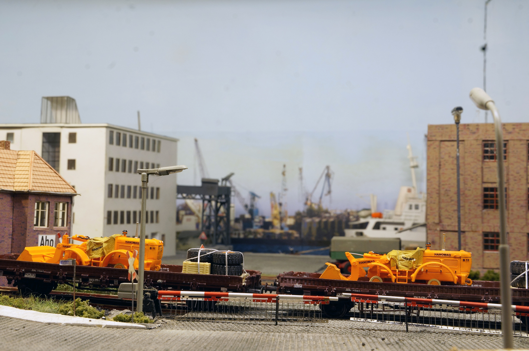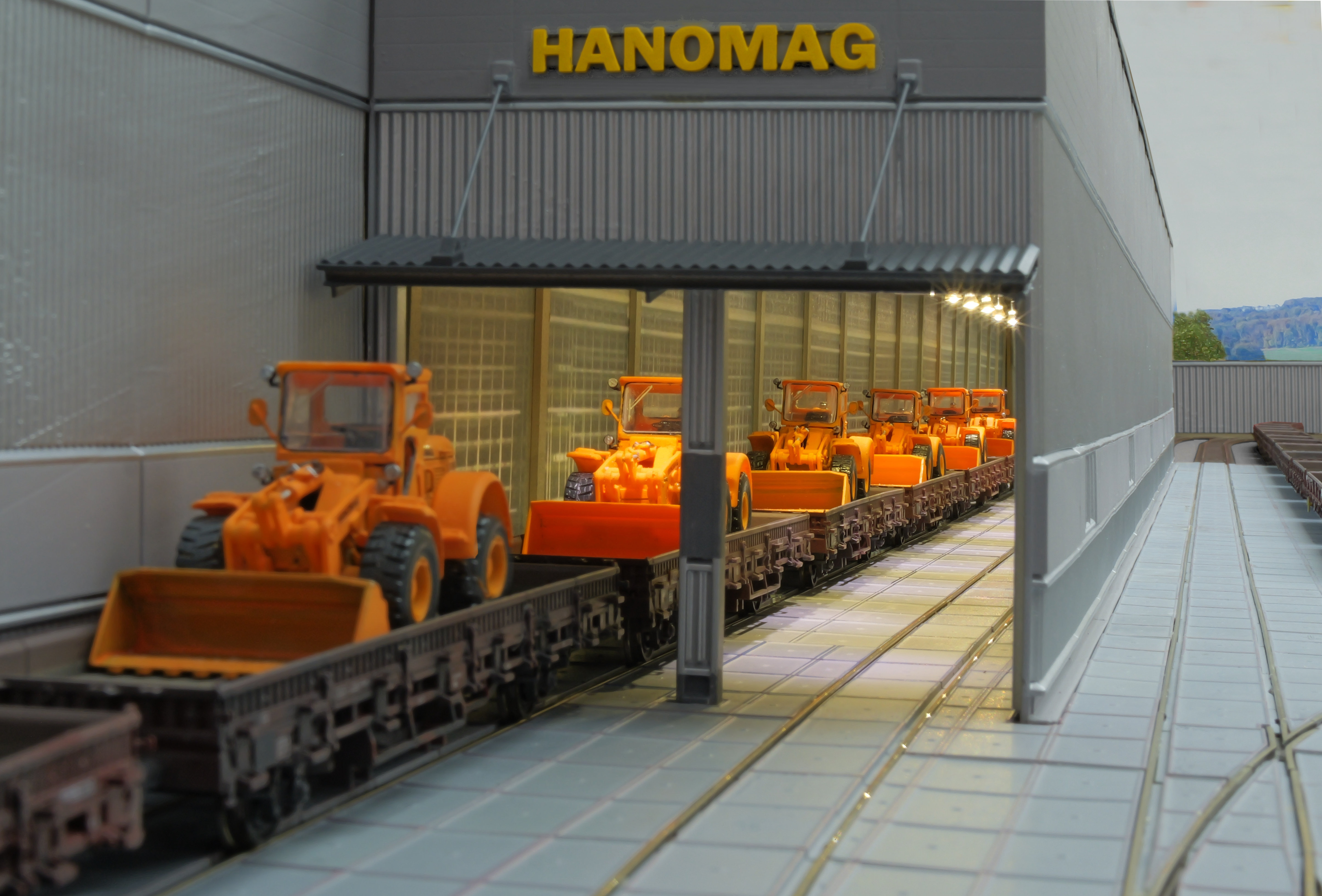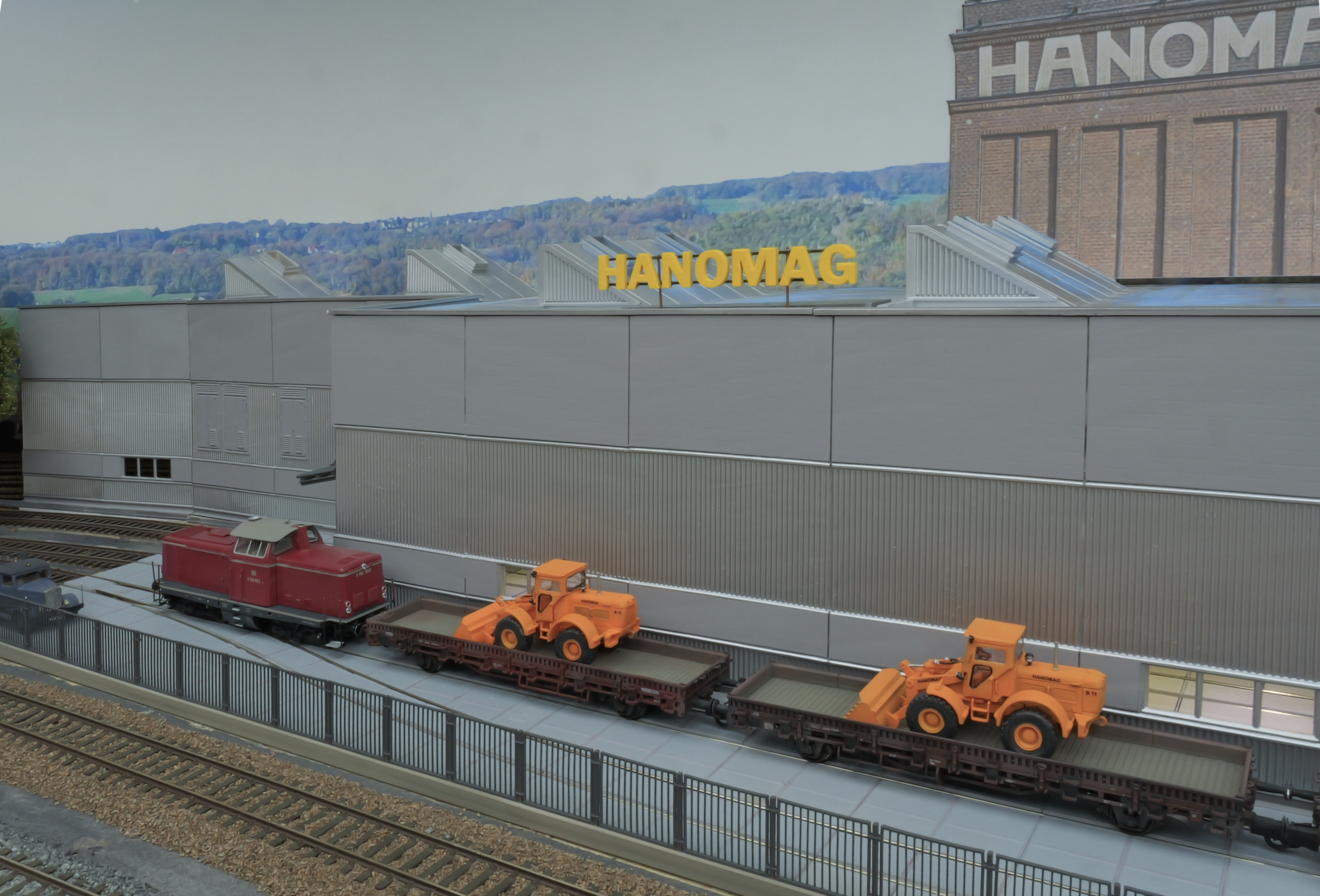Das Ganze soll im Zeitraum um 1964 spielen, wobei wir mit einigen Kompromissen leben mussten. Neben der Hanomag-Fabrikationsstätte in Hannover würde auch diesmal der Hafen Hamburg wieder eine zentrale Rolle spielen, denn viele Baumaschinen wurden weltweit exportiert. Darüber hinaus sollten aber auch andere Transportziele einbezogen werden, neben den Transversalen nach Skandinavien und Italien waren dies auch die Rampen an vielen Ladestraßen an mehr oder weniger großen Zielbahnhöfen in Nord-, West- und Süddeutschland, in deren Einzugsbereich die lokalen Baumaschinenhändler angesiedelt waren.