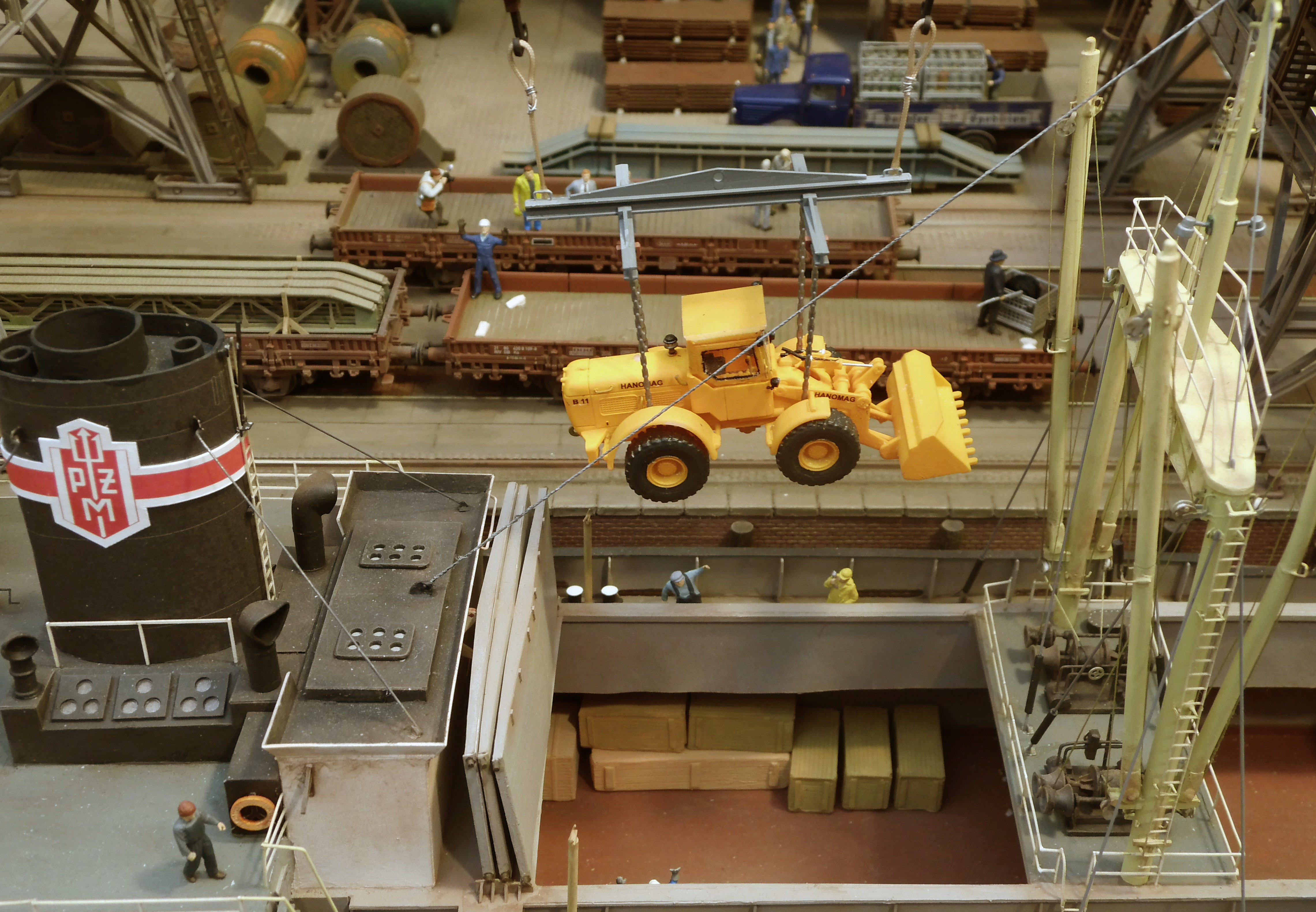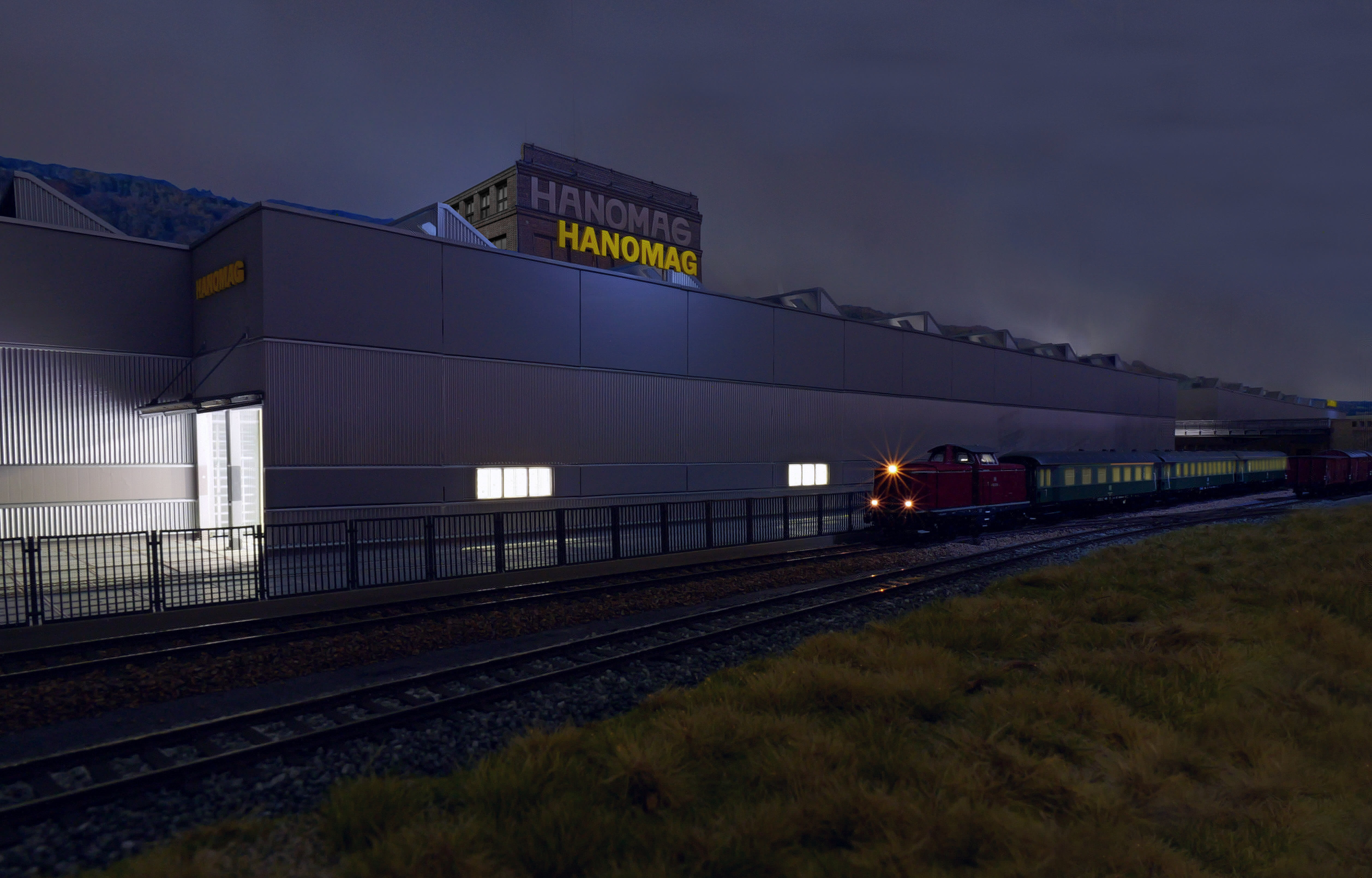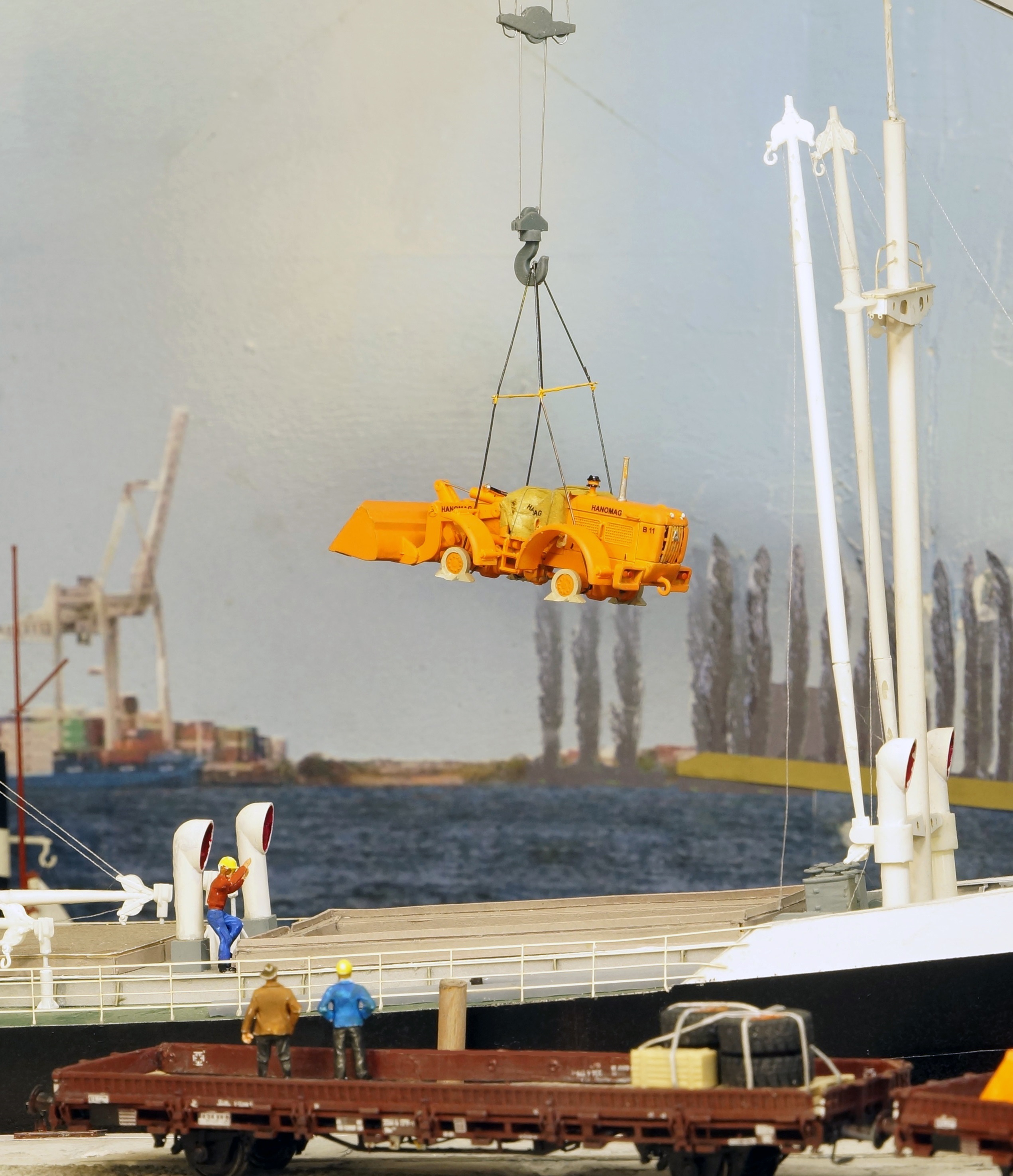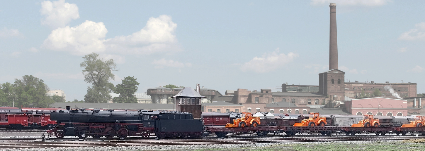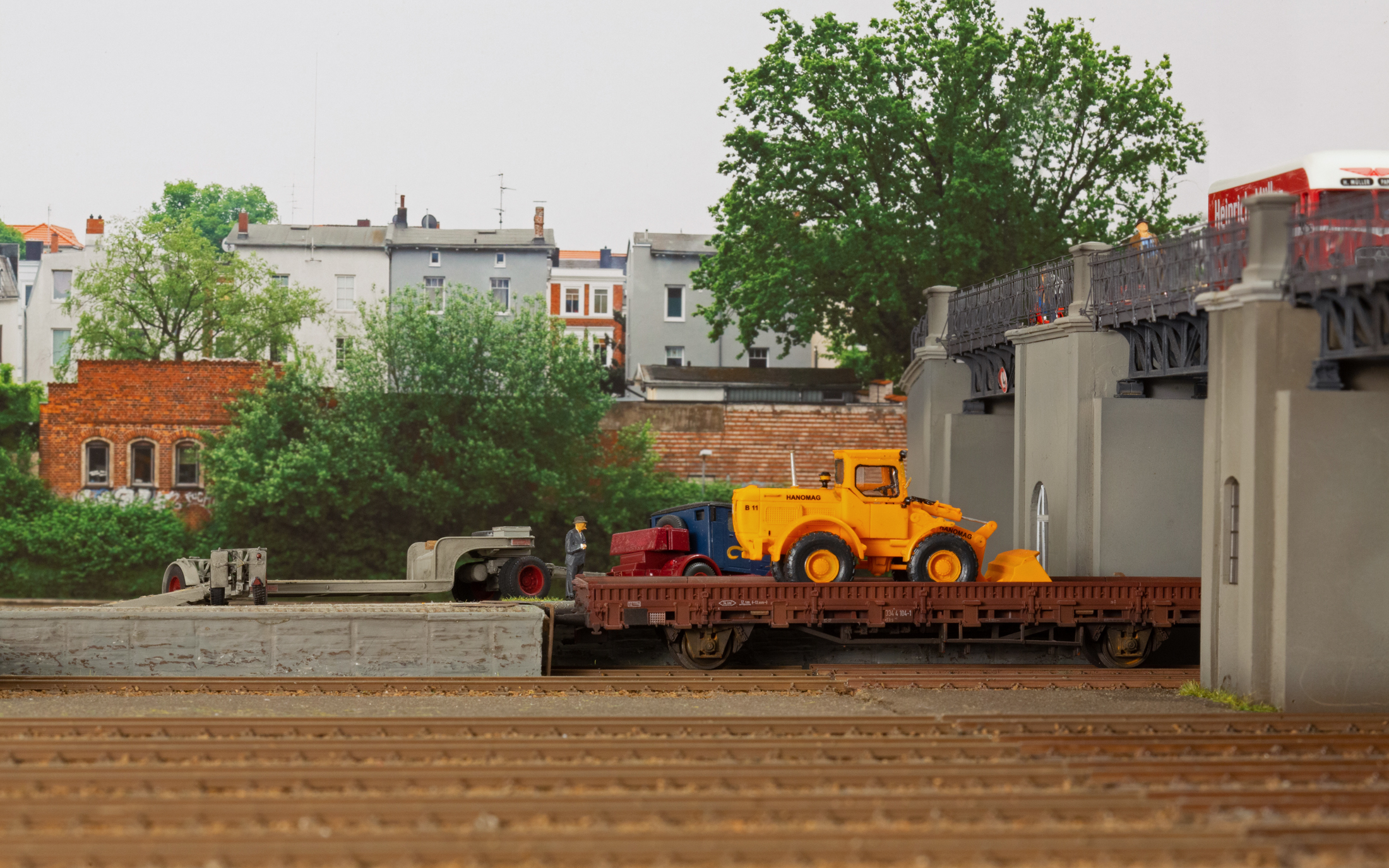 Das Ganze soll im Zeitraum um 1964 spielen, wobei wir mit einigen Kompromissen leben mussten. Neben der Hanomag-Fabrikationsstätte in Hannover würde auch diesmal der Hafen Hamburg wieder eine zentrale Rolle spielen, denn viele Baumaschinen wurden weltweit exportiert. Darüber hinaus sollten aber auch andere Transportziele einbezogen werden, neben den Transversalen nach Skandinavien und Italien waren dies auch die Rampen an vielen Ladestraßen an mehr oder weniger großen Zielbahnhöfen in Nord-, West- und Süddeutschland, in deren Einzugsbereich die lokalen Baumaschinenhändler angesiedelt waren.