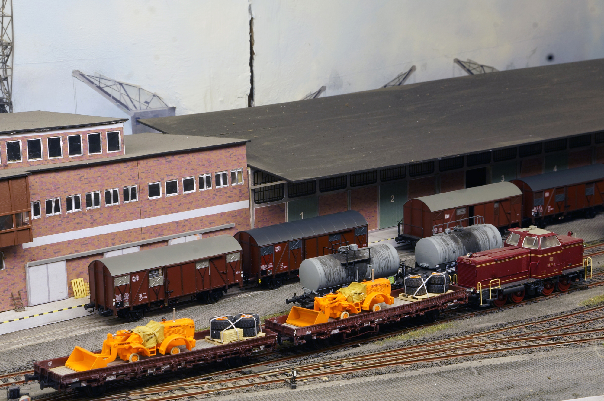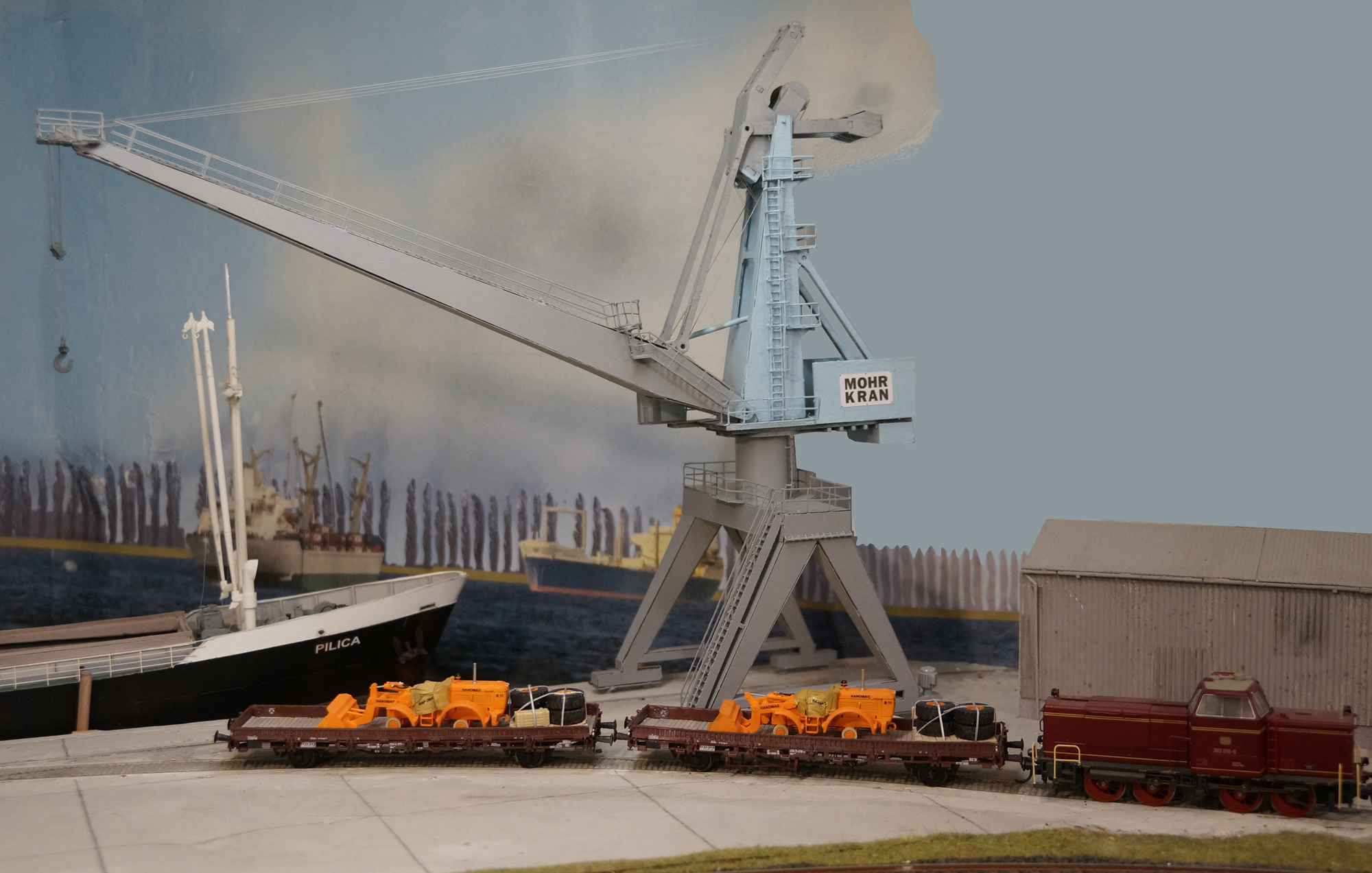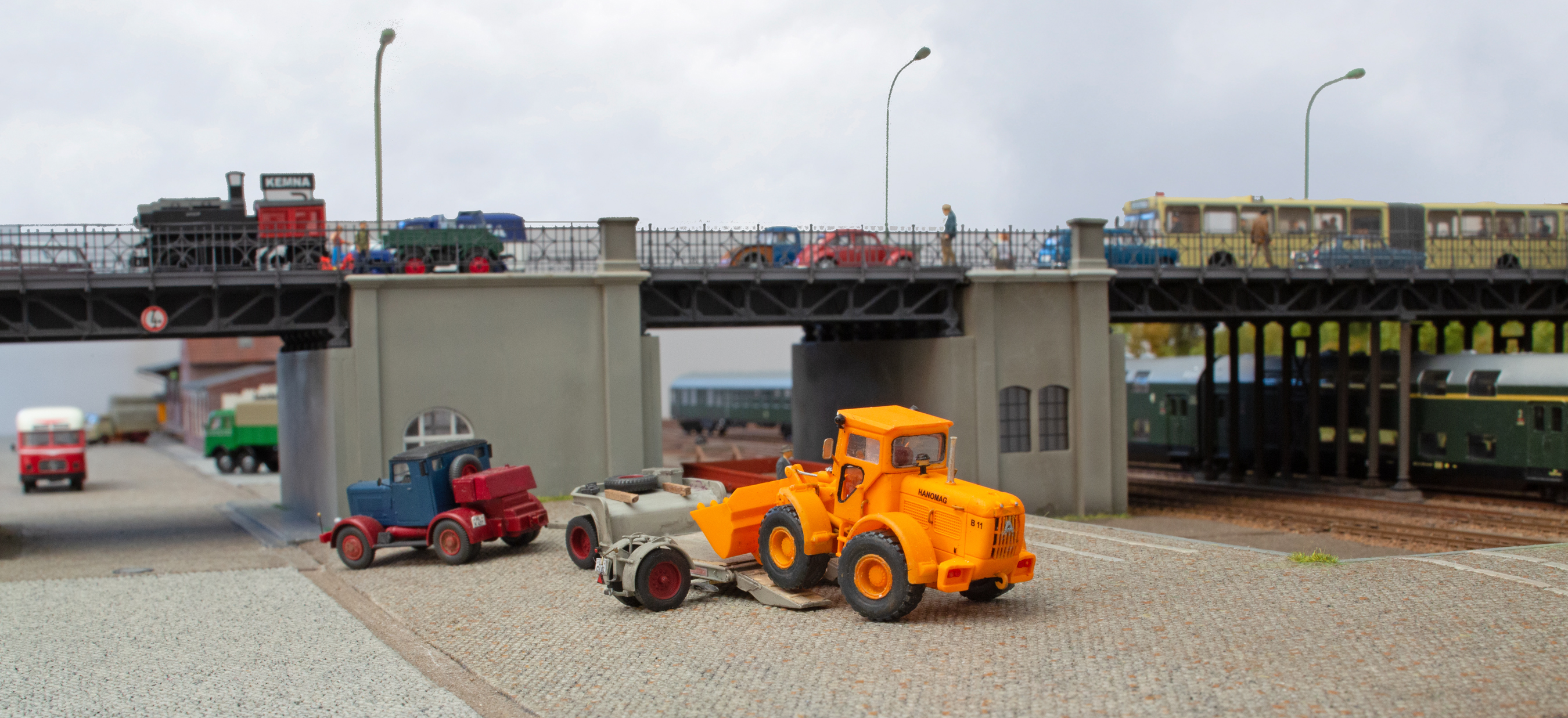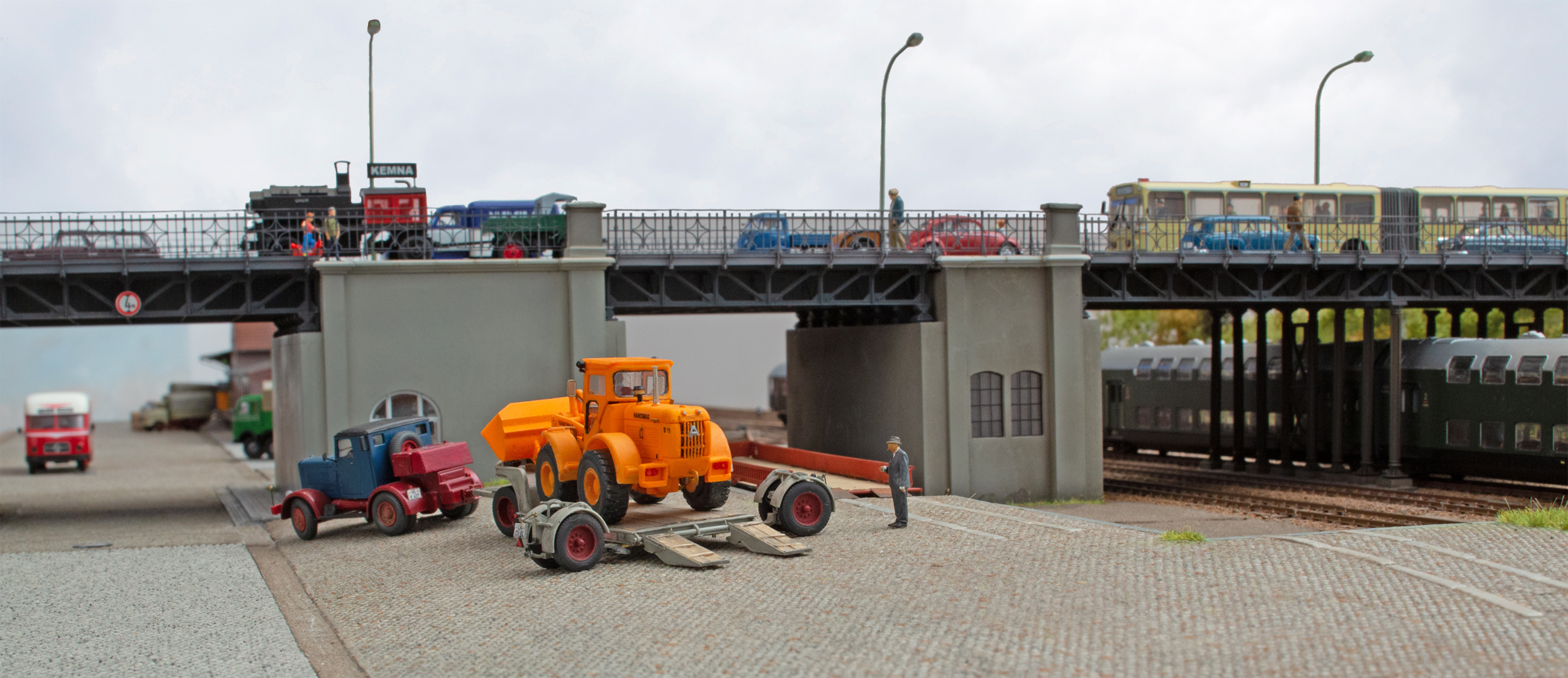 Das Ganze soll im Zeitraum um 1964 spielen, wobei wir mit einigen Kompromissen leben mussten. Neben der Hanomag-Fabrikationsstätte in Hannover würde auch diesmal der Hafen Hamburg wieder eine zentrale Rolle spielen, denn viele Baumaschinen wurden weltweit exportiert. Darüber hinaus sollten aber auch andere Transportziele einbezogen werden, neben den Transversalen nach Skandinavien und Italien waren dies auch die Rampen an vielen Ladestraßen an mehr oder weniger großen Zielbahnhöfen in Nord-, West- und Süddeutschland, in deren Einzugsbereich die lokalen Baumaschinenhändler angesiedelt waren.