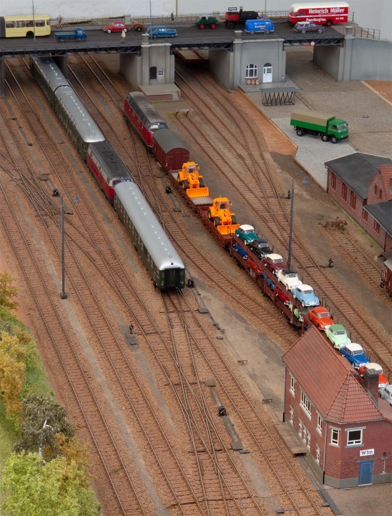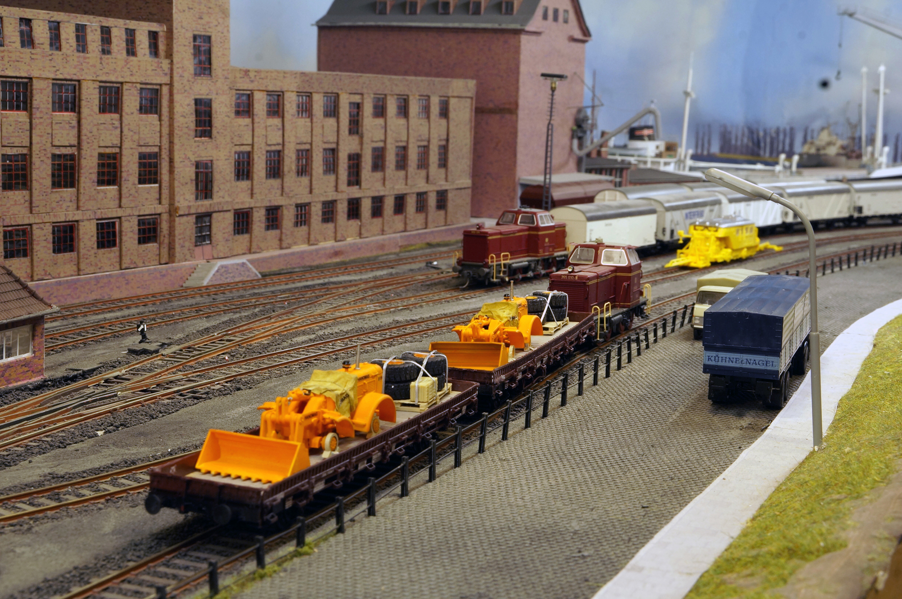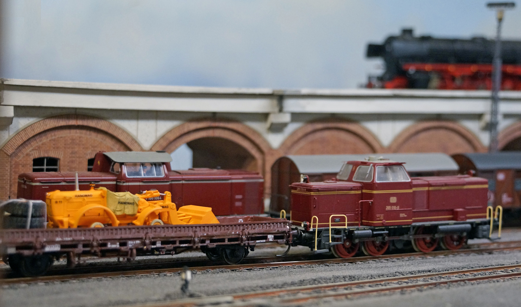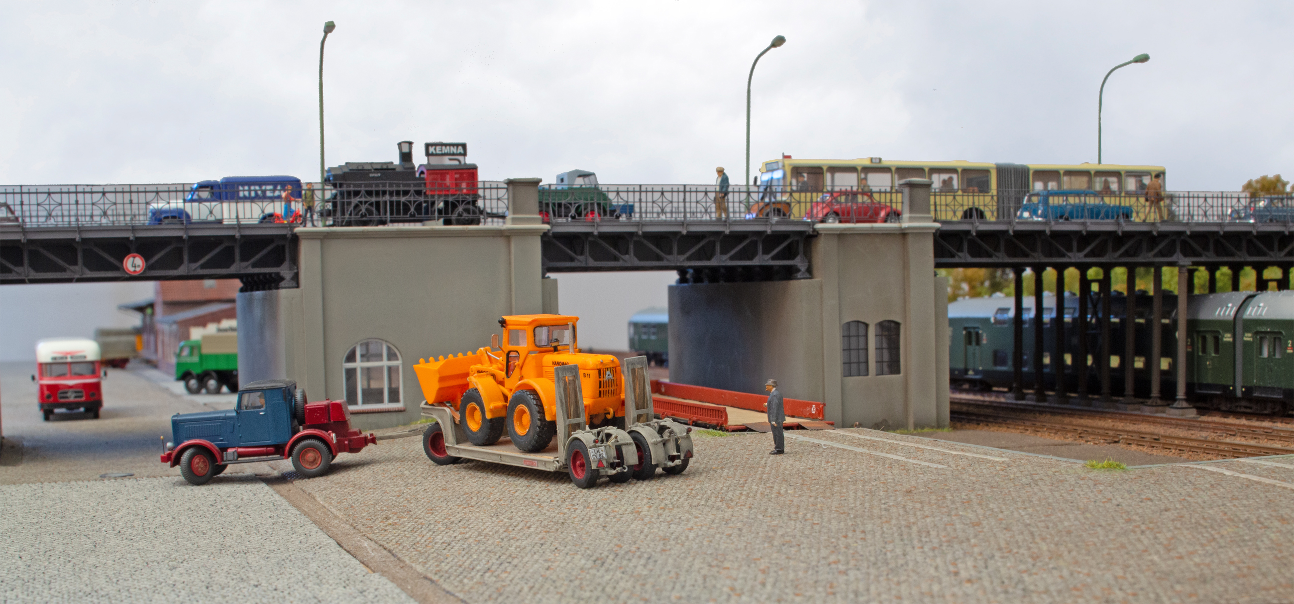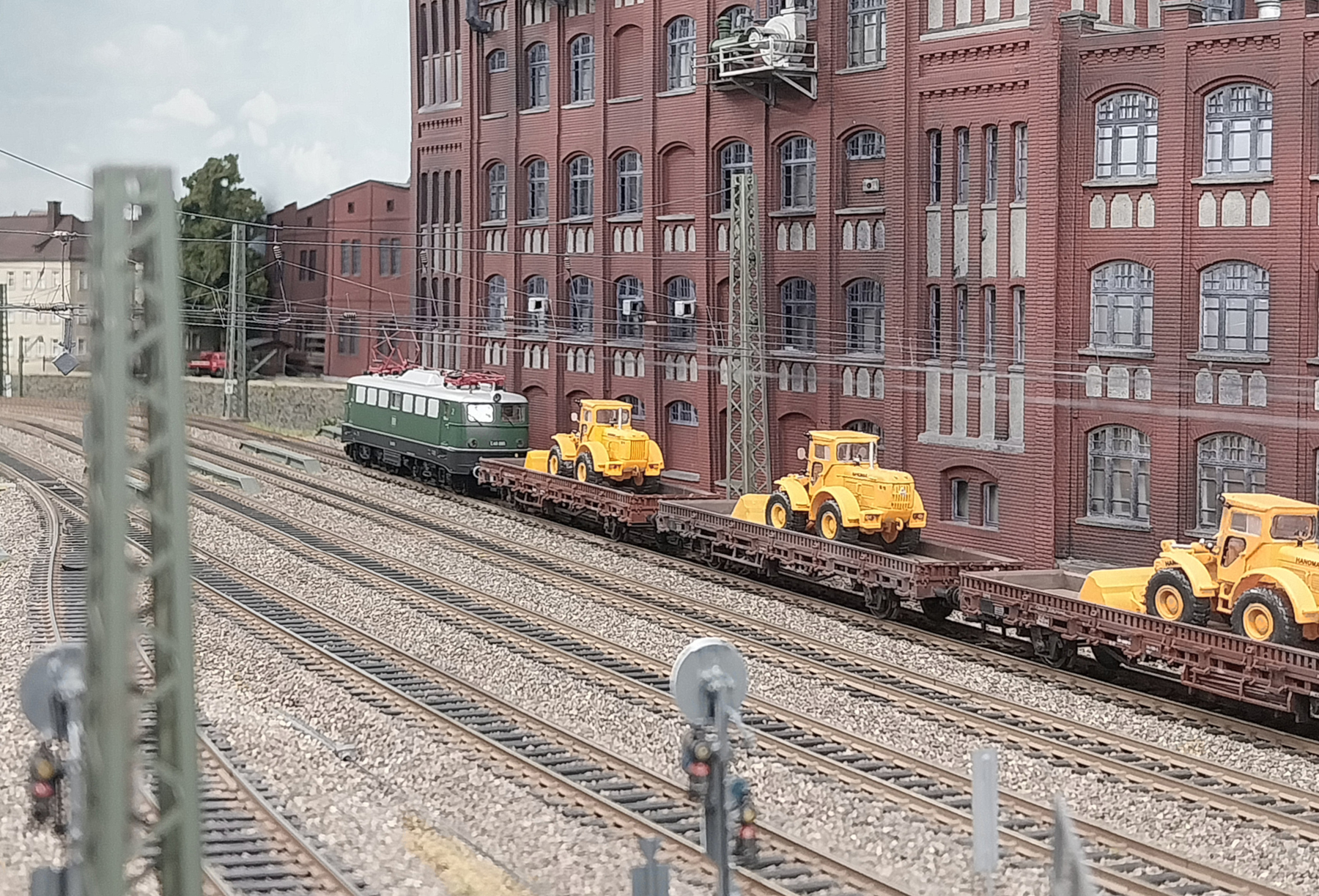 Das Ganze soll im Zeitraum um 1964 spielen, wobei wir mit einigen Kompromissen leben mussten. Neben der Hanomag-Fabrikationsstätte in Hannover würde auch diesmal der Hafen Hamburg wieder eine zentrale Rolle spielen, denn viele Baumaschinen wurden weltweit exportiert. Darüber hinaus sollten aber auch andere Transportziele einbezogen werden, neben den Transversalen nach Skandinavien und Italien waren dies auch die Rampen an vielen Ladestraßen an mehr oder weniger großen Zielbahnhöfen in Nord-, West- und Süddeutschland, in deren Einzugsbereich die lokalen Baumaschinenhändler angesiedelt waren.