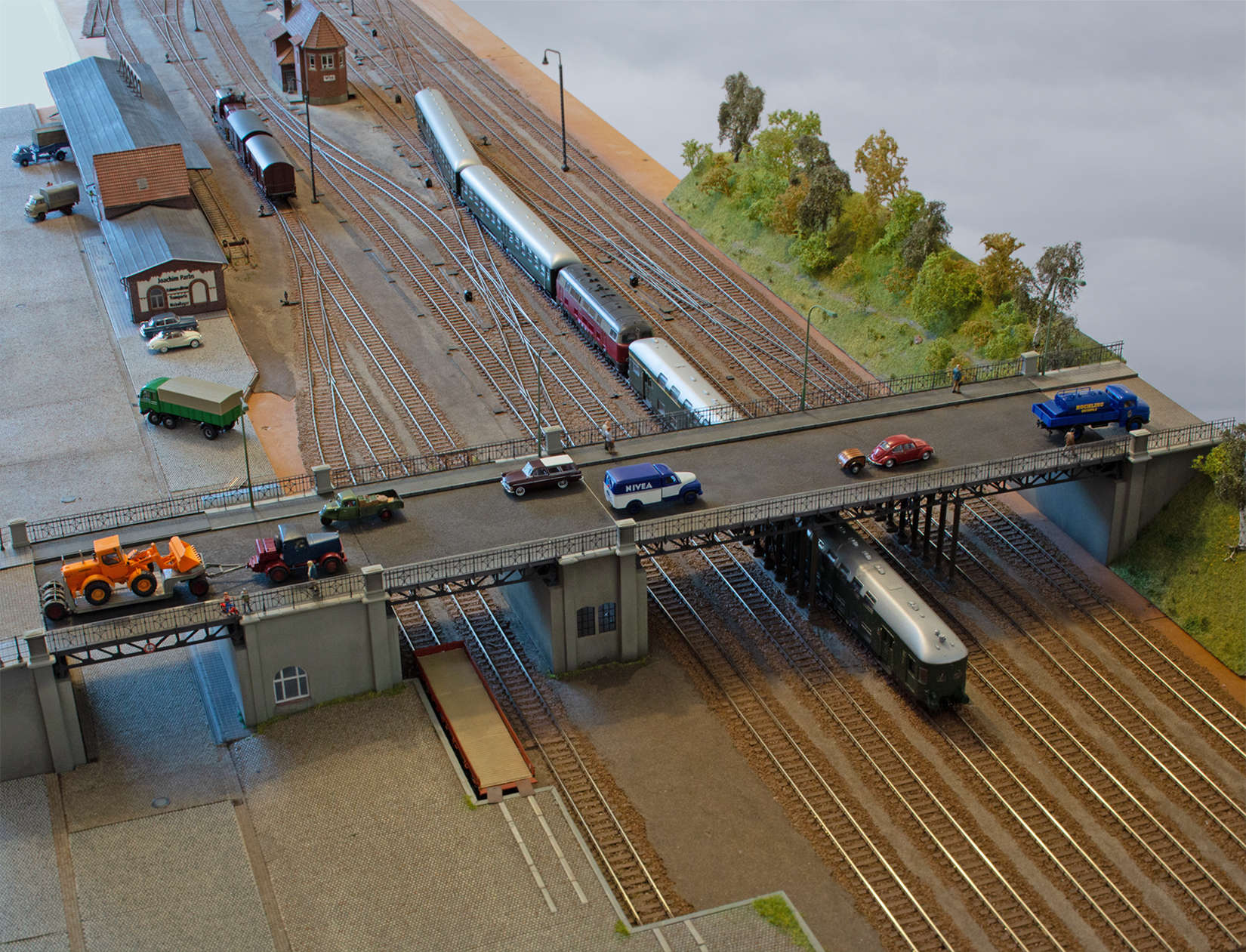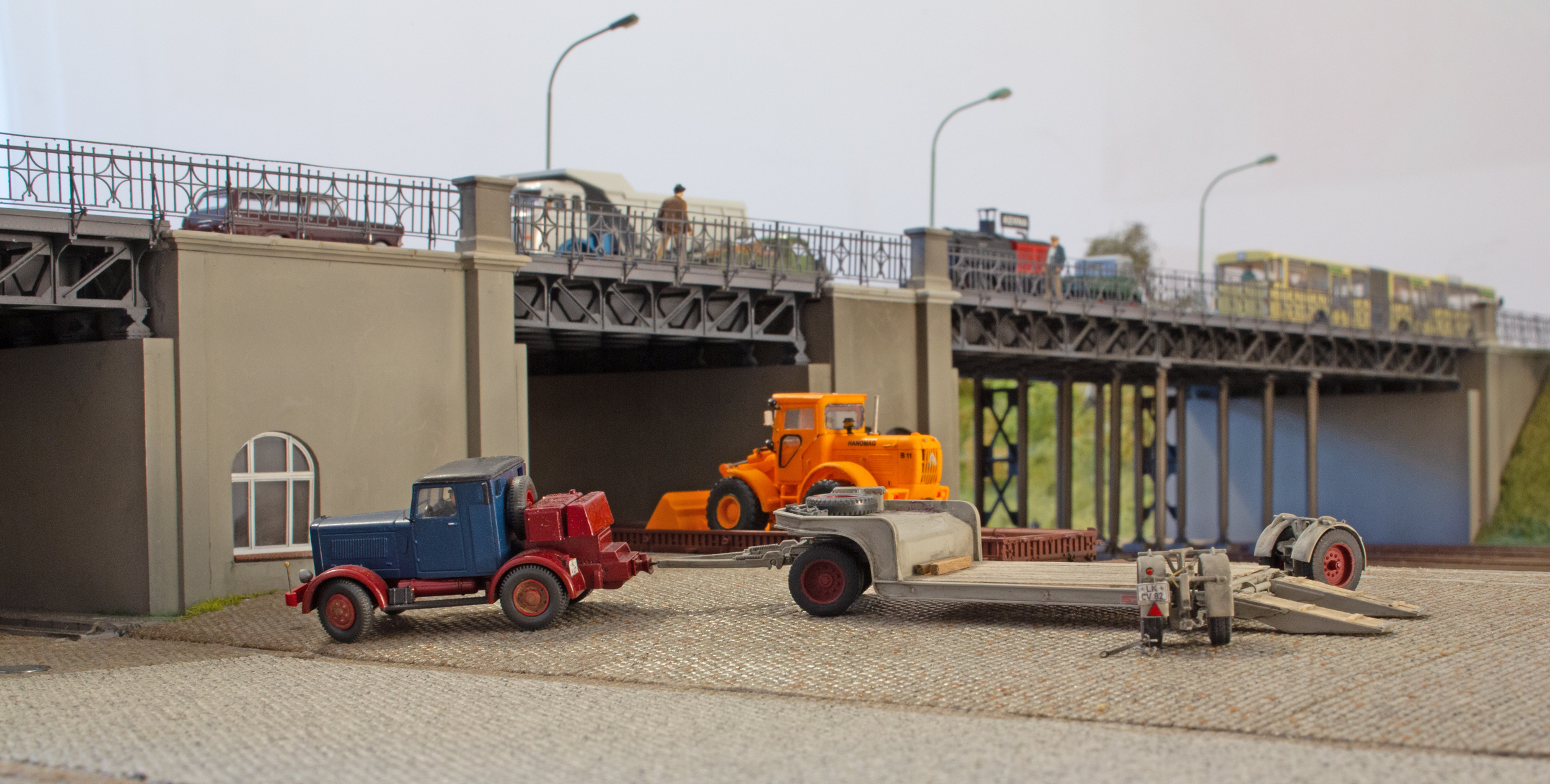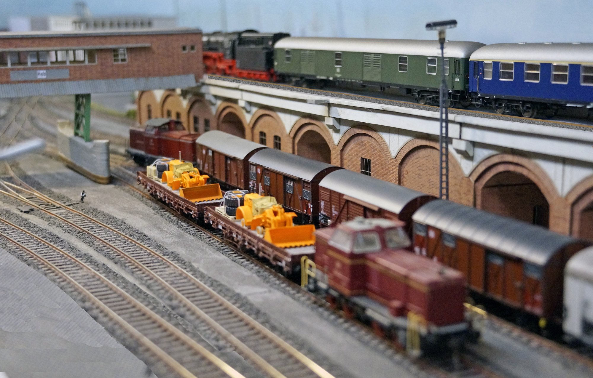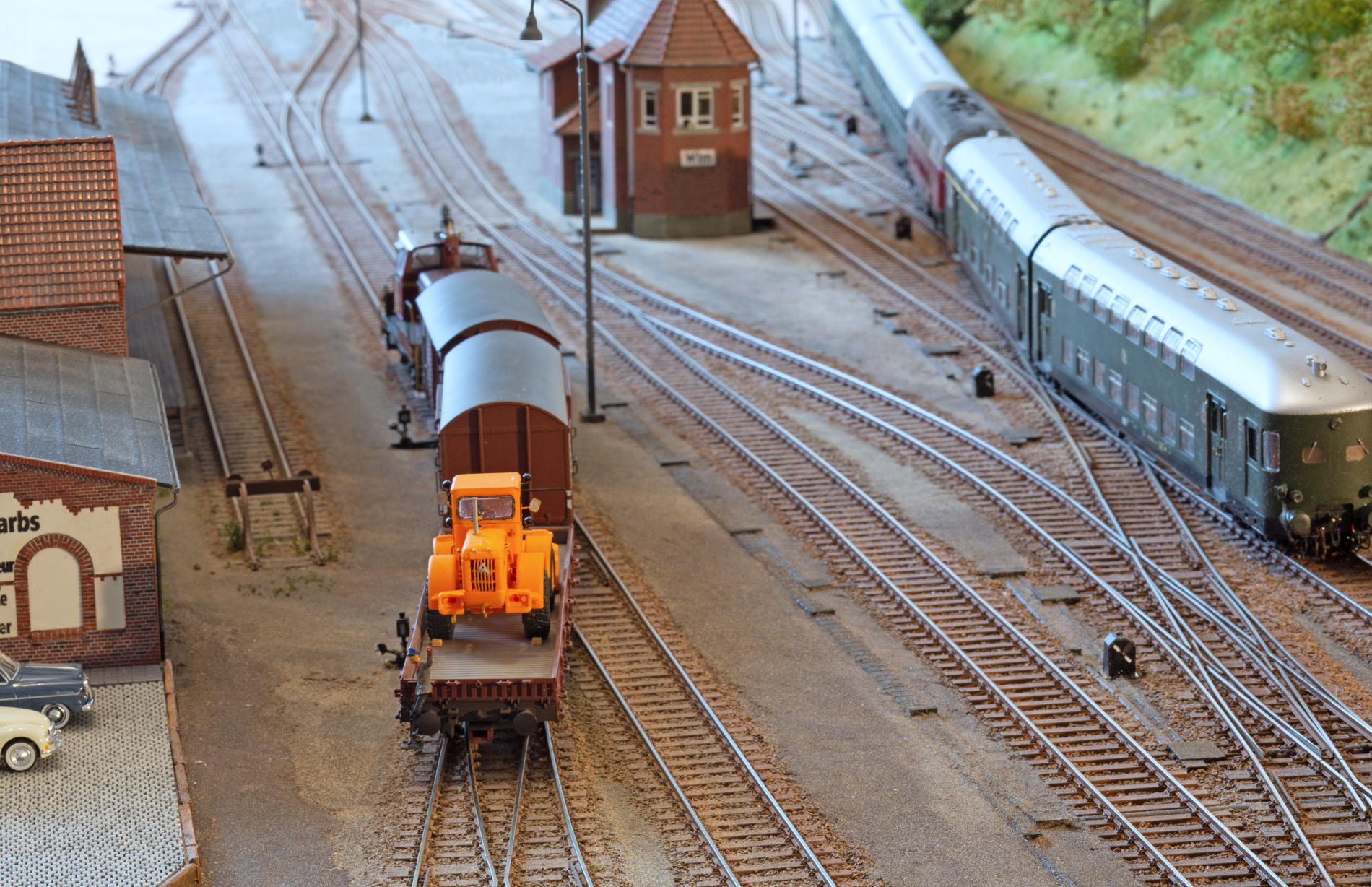 Das Ganze soll im Zeitraum um 1964 spielen, wobei wir mit einigen Kompromissen leben mussten. Neben der Hanomag-Fabrikationsstätte in Hannover würde auch diesmal der Hafen Hamburg wieder eine zentrale Rolle spielen, denn viele Baumaschinen wurden weltweit exportiert. Darüber hinaus sollten aber auch andere Transportziele einbezogen werden, neben den Transversalen nach Skandinavien und Italien waren dies auch die Rampen an vielen Ladestraßen an mehr oder weniger großen Zielbahnhöfen in Nord-, West- und Süddeutschland, in deren Einzugsbereich die lokalen Baumaschinenhändler angesiedelt waren.