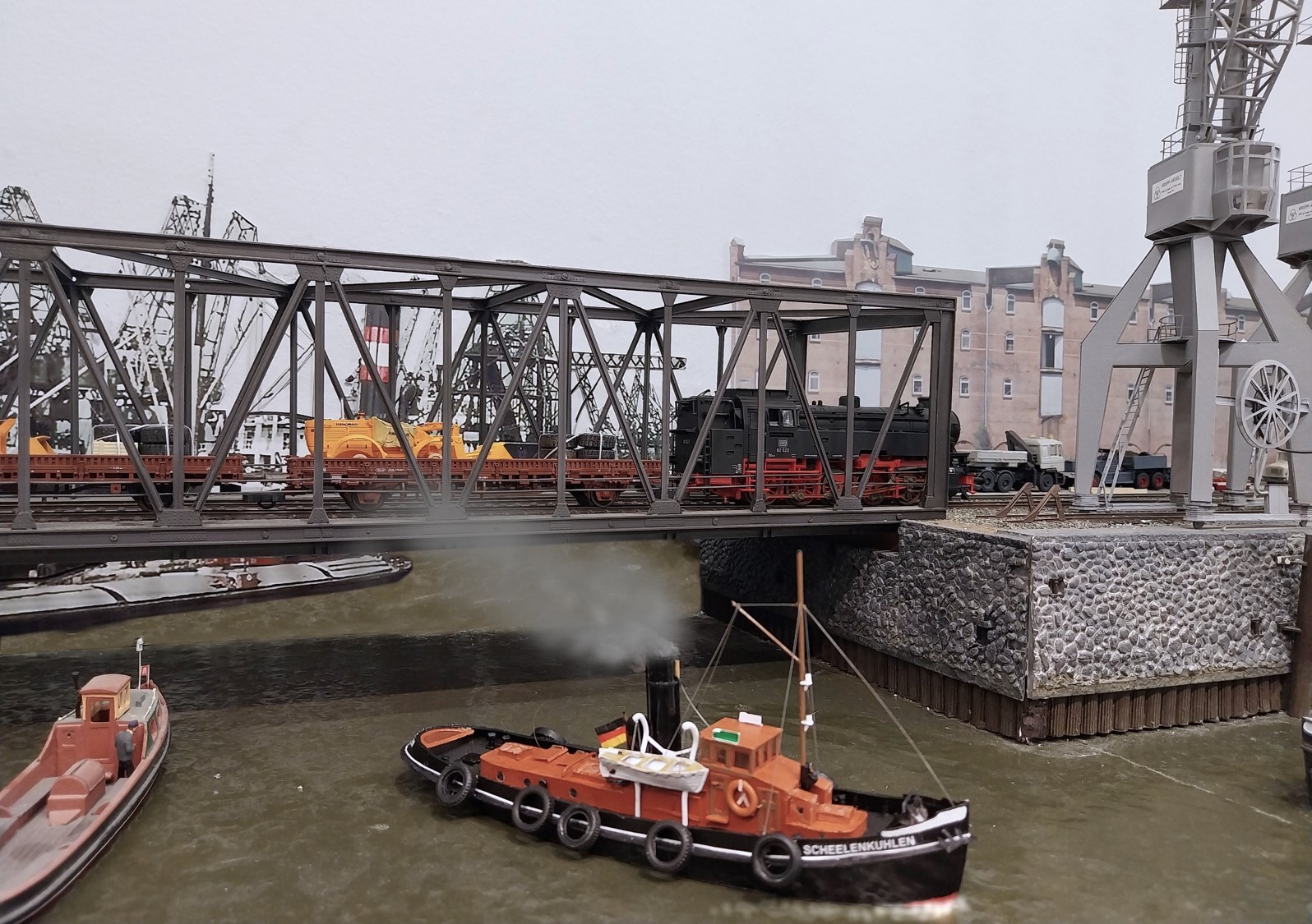 Nachdem die „eilige Ware“ bereits abgezogen wurde, nimmt eine örtliche 94, die noch ihre Dienste auf der Hafenbahn verrichtet, den Kbs mit und stellt ihn am Gleis des Kamerunkais zur Entladung zu. Hamburg bezeichnete die Einfahrten in die Hafenbecken als Höfte, die Kaiseiten als Kaie und Hafenbecken mit übergeordneten Namen. So war der Kamerunkai zusammen mit Togokai und Windhukkai, an dem bereits modernste Rundbogenschuppen, sogenannte Kathedraldachschuppen, gebaut wurden, die auch heute noch in Fragmenten existieren, im Afrikahafen (später als Südwesthafen geführt) mit der Einfahrt Afrikahöft. Der Kamerunkai war einer der Kaie, an dem man noch am längsten die Großsegler aus Übersee beobachten konnte, ist heute wie in der Karte zu sehen, weitestgehend verfüllt und wird heute für untergeordnete Liniendienste verwendet. Viele Spediteure haben dort ihr bescheidenes Zuhause.