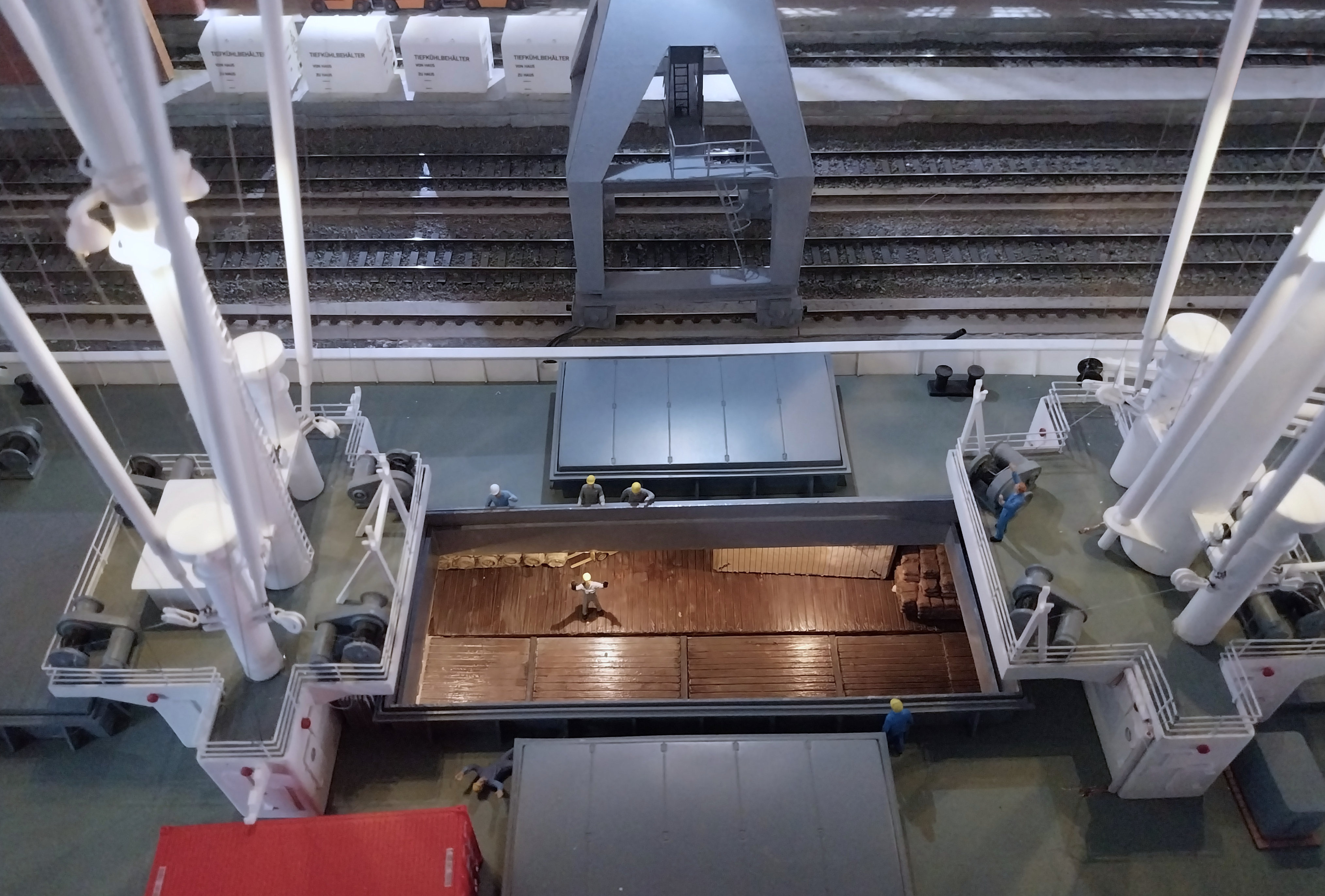 Konnten trotz alledem Anfang Dezember auf einigen Rampen bereits Entladeszenen dargestellt werden, so war die Lage bei der Hallen-Großbaustelle über die Wochen vor Weihnachten bis zum Jahresende mehr als angespannt. Mit einer täglichen Arbeitszeit jenseits der behördlichen zulässigen Grenzen verlegte Andreas Hunderte von Stelcon-Platten, druckte Hintergründe, schotterte Gleise, baute Lampen und Inneneinrichtungen und und und….. . Eine große Halle macht irgendwie etwas mehr Arbeit als eine kleine. Das treue Druckerchen war über Wochen hinweg täglich im Einsatz und lieferte Einzelteil-Nachschub.