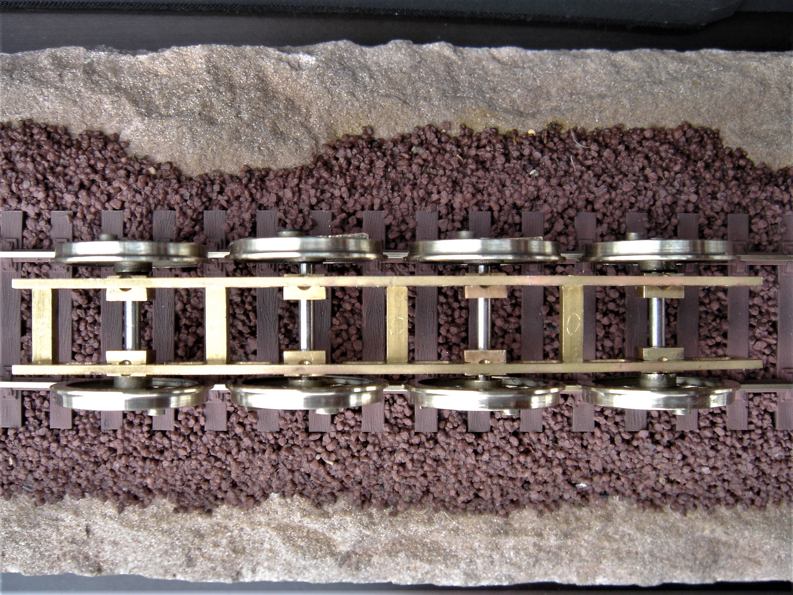 Das Fahrwerk erhält einen Messingbarrenrahmen mit 4 gefederten Treibräderachsen.