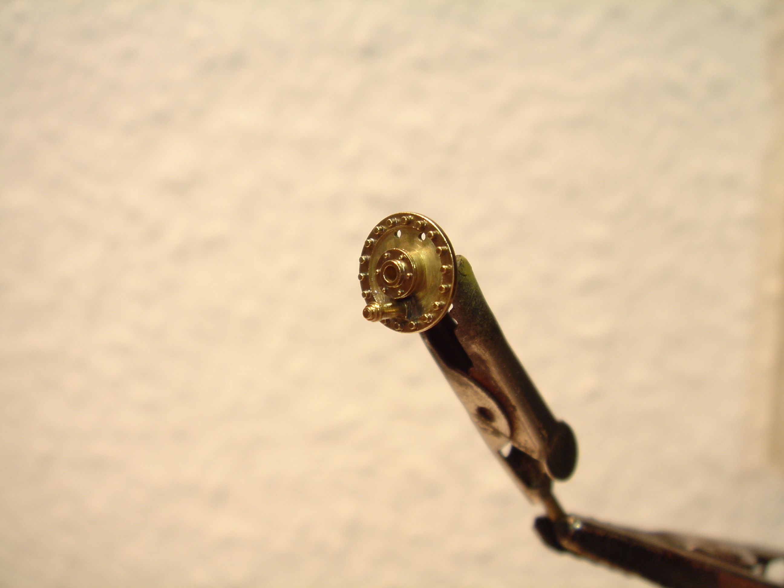 Auch die Scherenbremse ist voll beweglich angefertigt. Was mit nicht gefällt, sind die Radnarben der Treibräder an der isolierten Seite. Da werde ich noch nachbessern müssen.