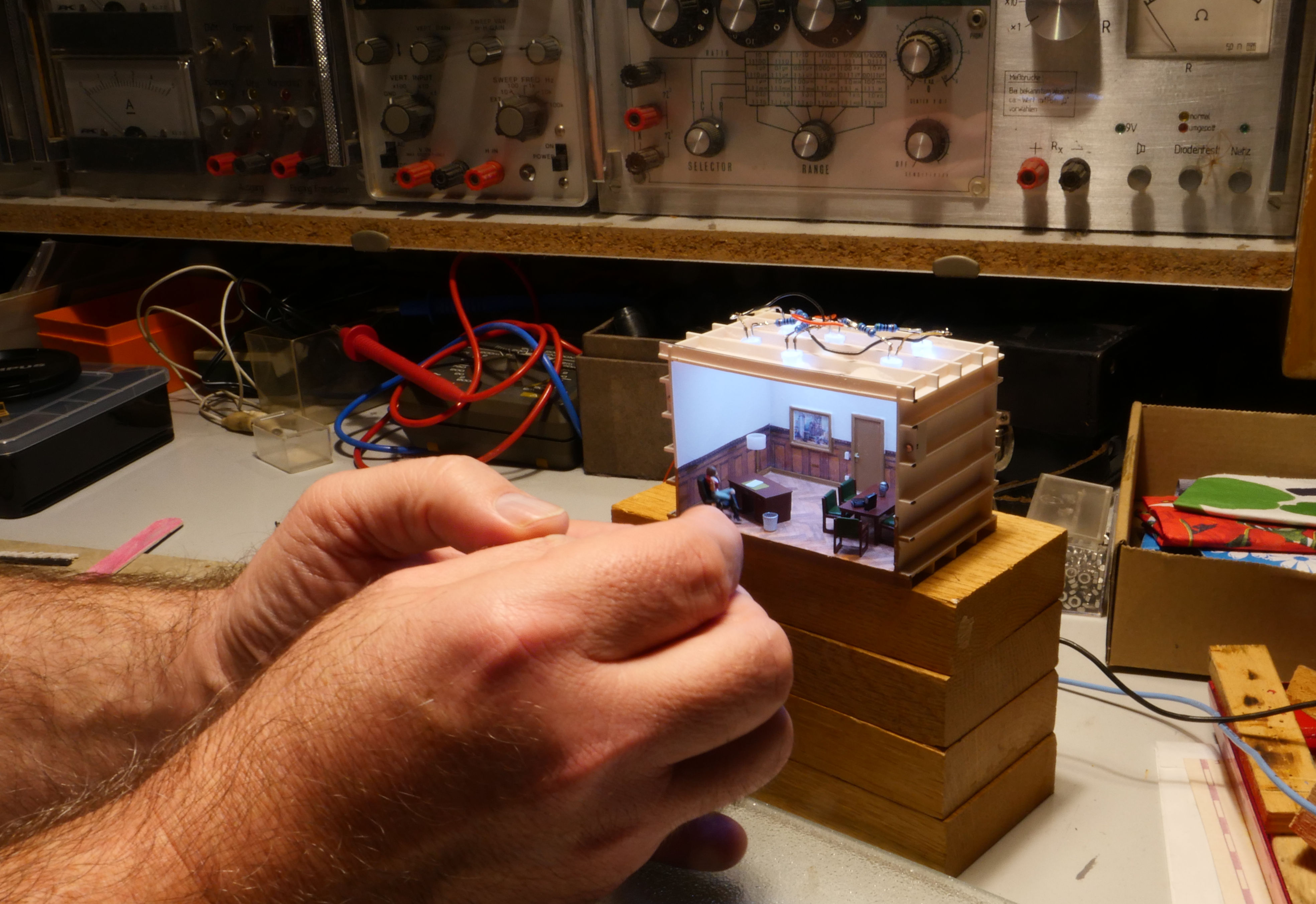 Und also haben wir das Ensemble kurz vor Weihnachten auf dem Werktisch fotografiert, mit fliegender Verdrahtung: