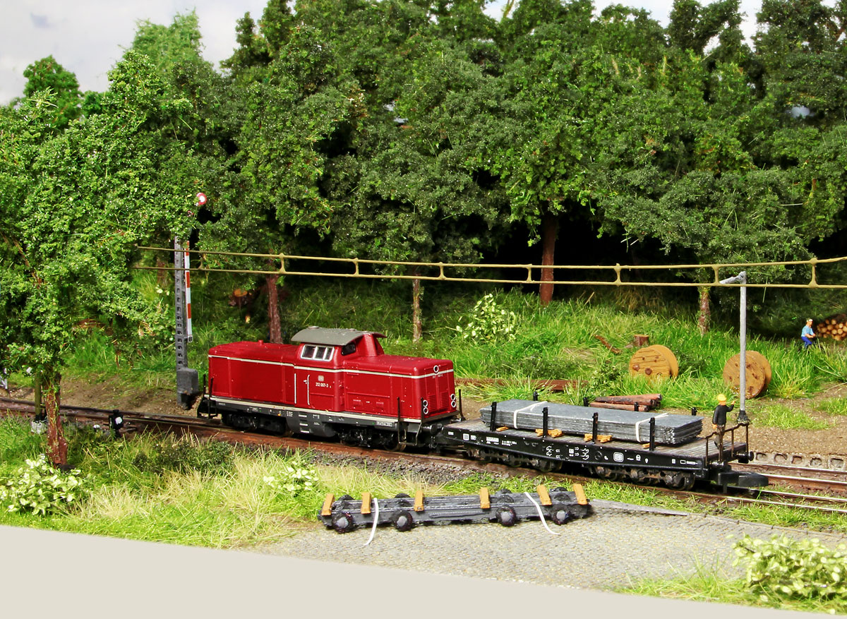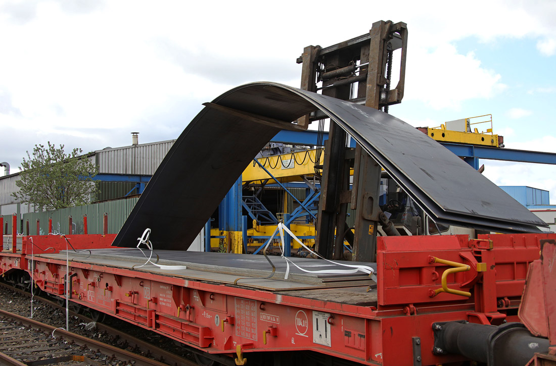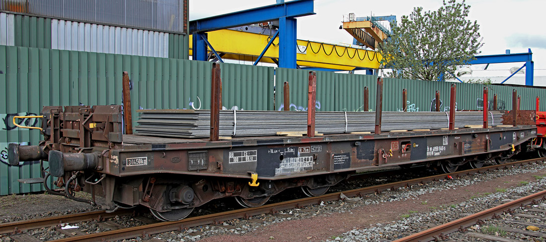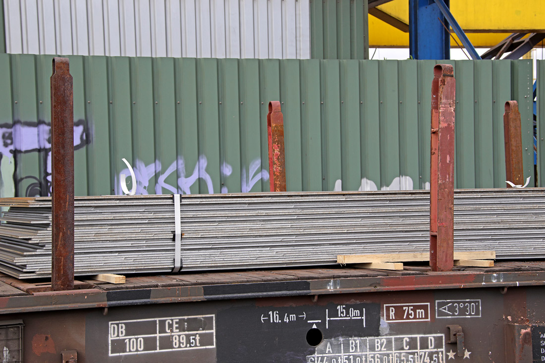 Damit ging das Problem schon los, es hätte für die 79 Tonnen Stahlplatten eigentlich eines Samms bedurft, nach Rücksprache mit dem Direktions-Wagendienst war ein solcher kurzfristig allerdings nicht verfügbar. Im Werk stand nur noch ein Sa705, der gerade nicht gebraucht wurde. Und der hat weder Stirnwände noch -Rungen. Erstmal schauen, ob das überhaupt geht: