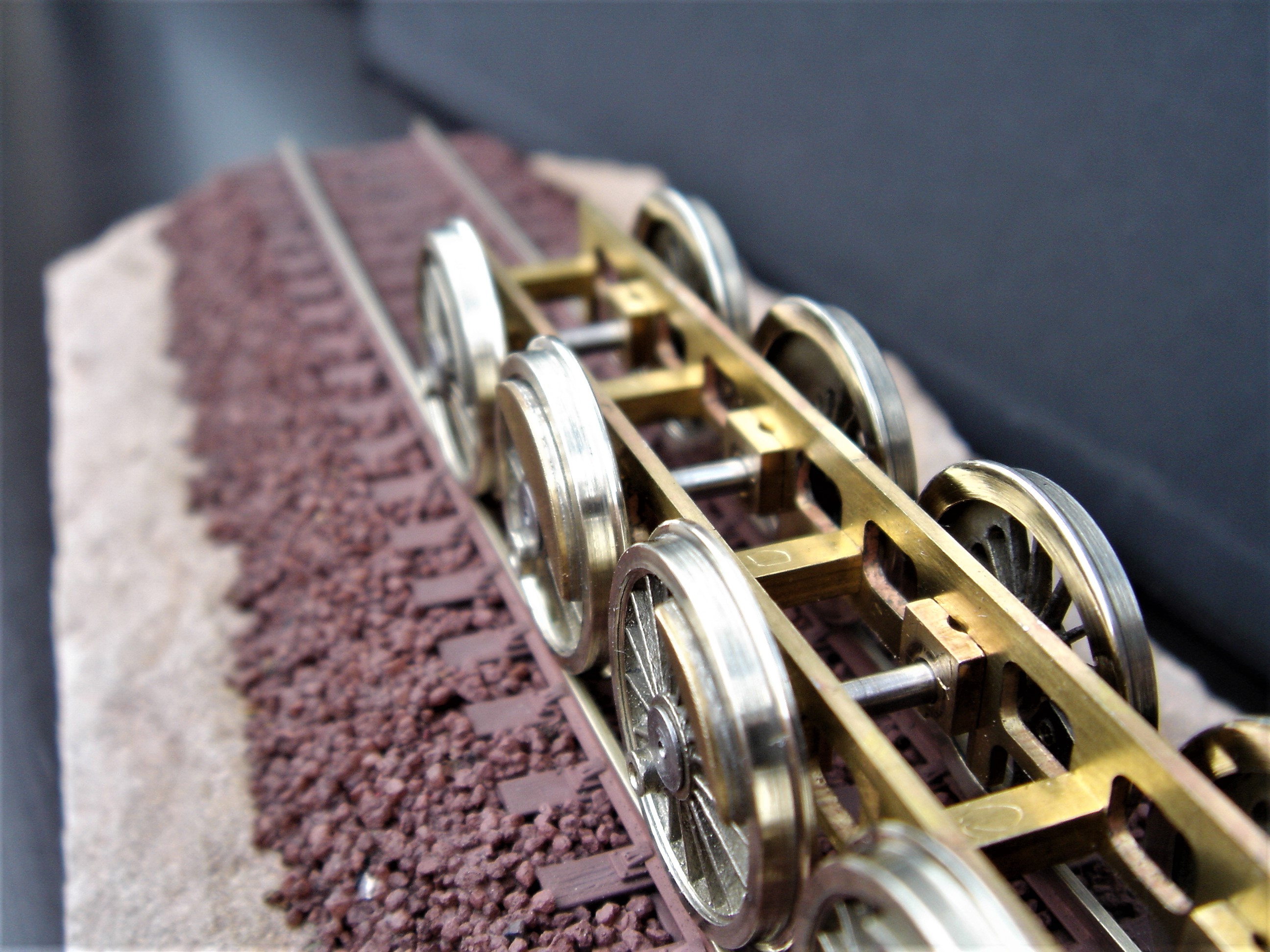 Das Fahrwerk erhält einen Messingbarrenrahmen mit 4 gefederten Treibräderachsen.