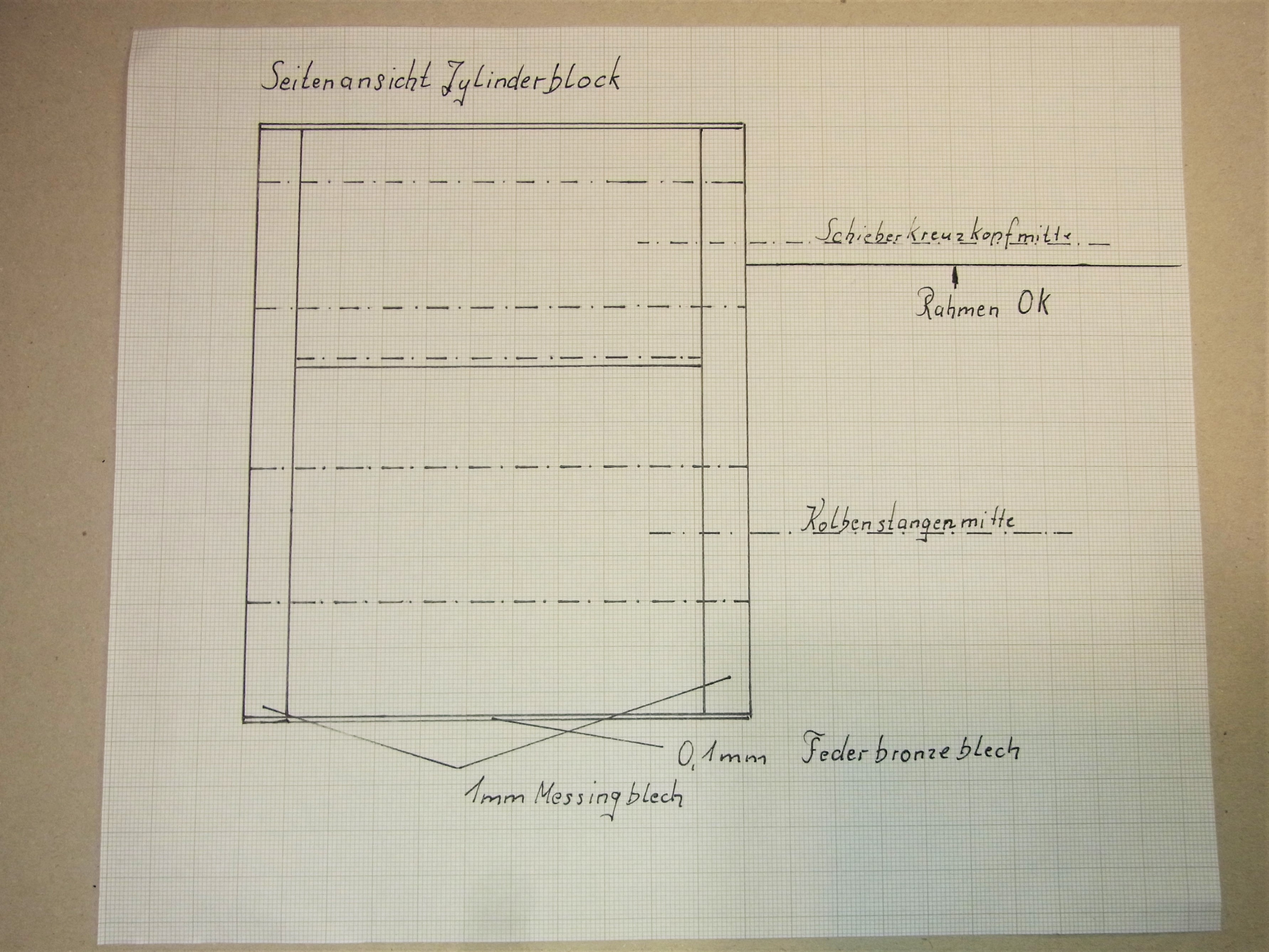 nun möchte ich euch auf den Zeichnungen den Zylinderblock, Kolbenflansch, Kolbenschutzrohr sowie das Schieberschutzrohr vorstellen.